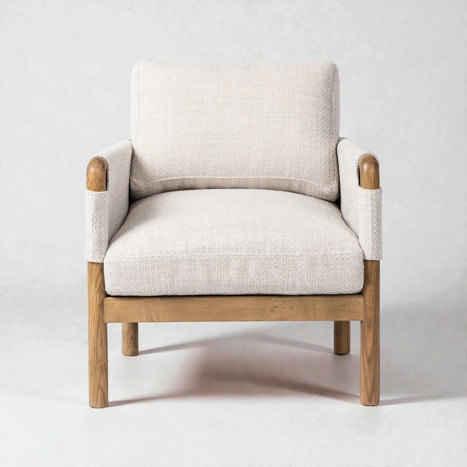 CABELLO Solid Oak Wood Armchair embodies natural strength and refined comfort. Crafted from solid oak wood and finished with premium fabric upholstery, it offers a warm, sophisticated seating option—perfect for living rooms, lounges, or modern interiors.
