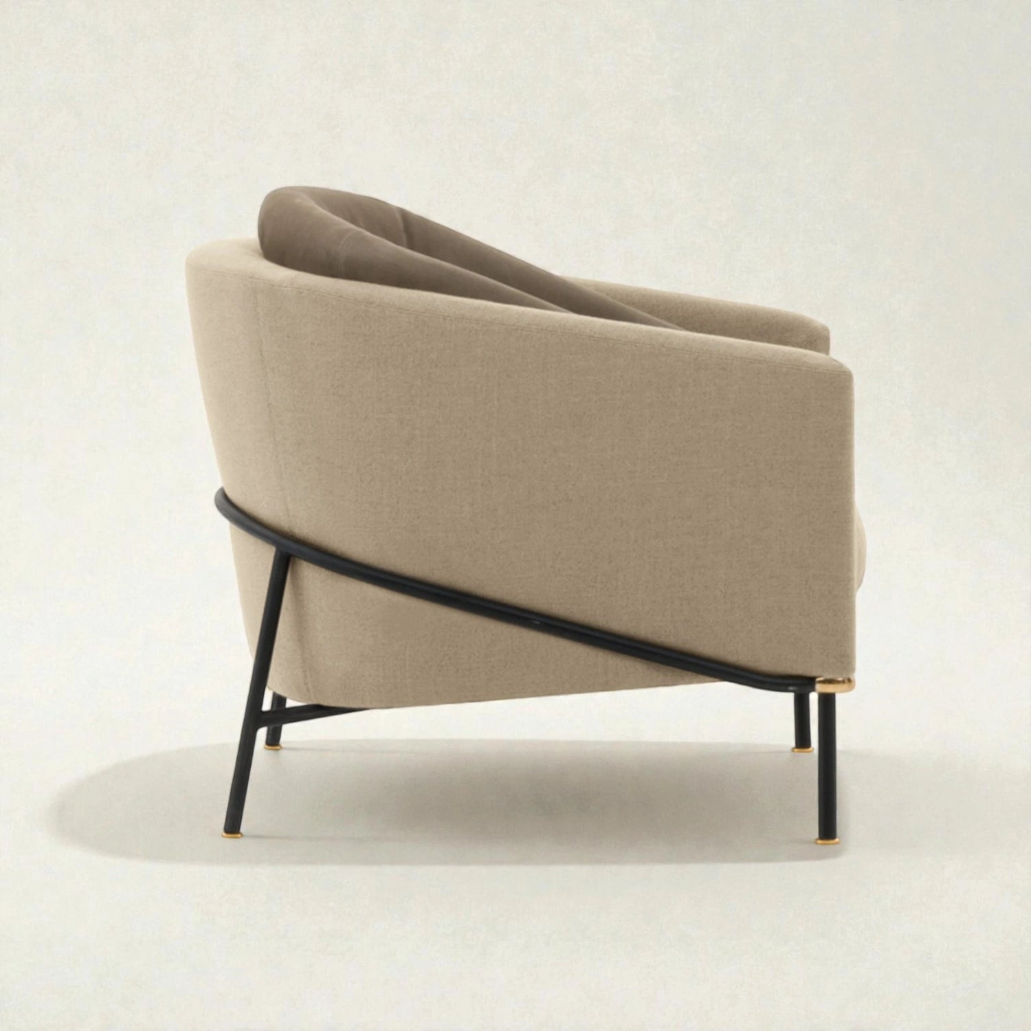 NOLAN Metal Legs Armchair delivers a clean, contemporary look with reliable comfort. Featuring a sturdy plywood frame, sleek metal legs, and premium fabric upholstery, it’s a versatile seating choice for modern living rooms and lounge spaces.