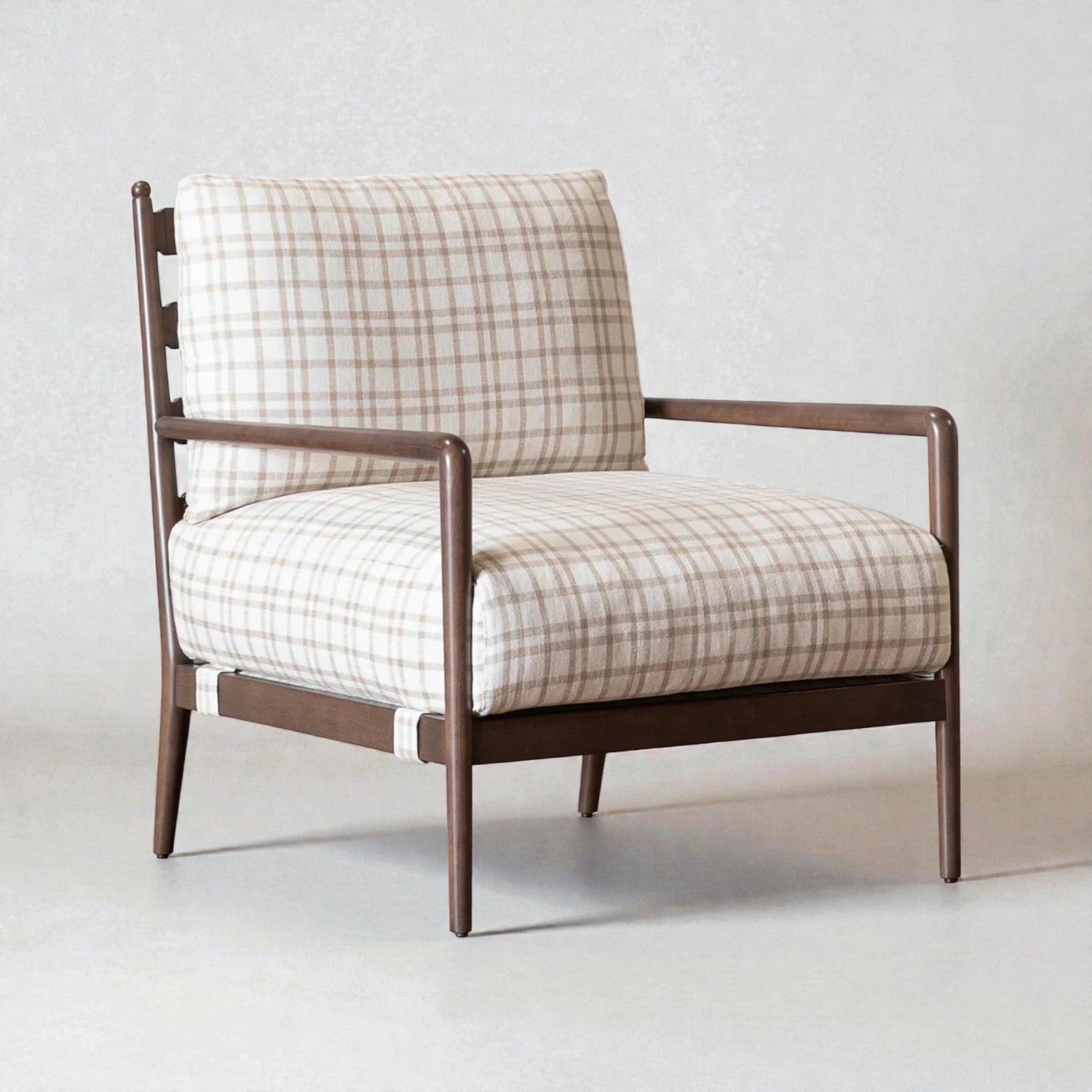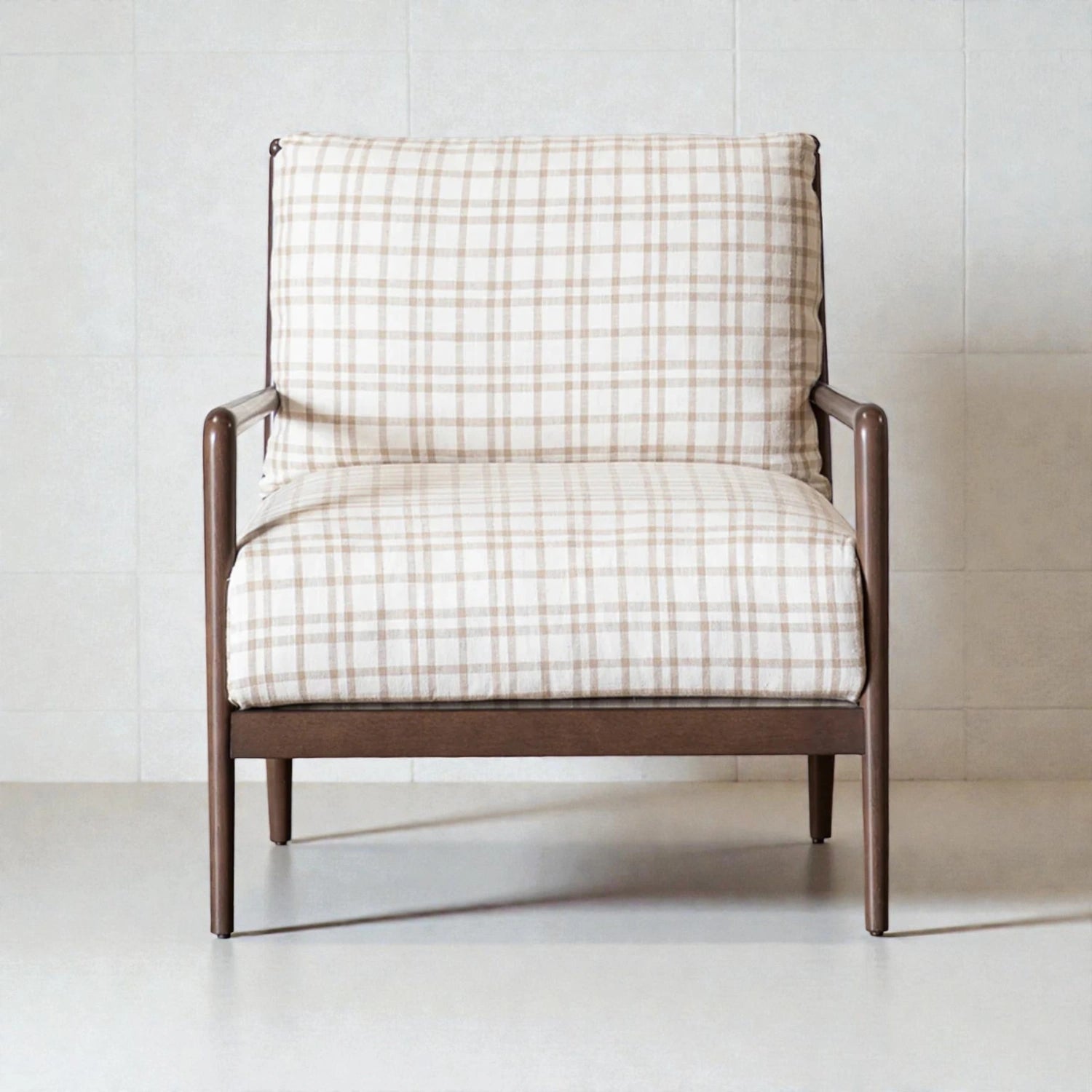 SEERE Solid Teak Wood Armchair blends timeless design with inviting comfort. Crafted from solid teak wood and finished with premium fabric upholstery, it adds warmth, durability, and understated elegance to living rooms and lounge spaces.
