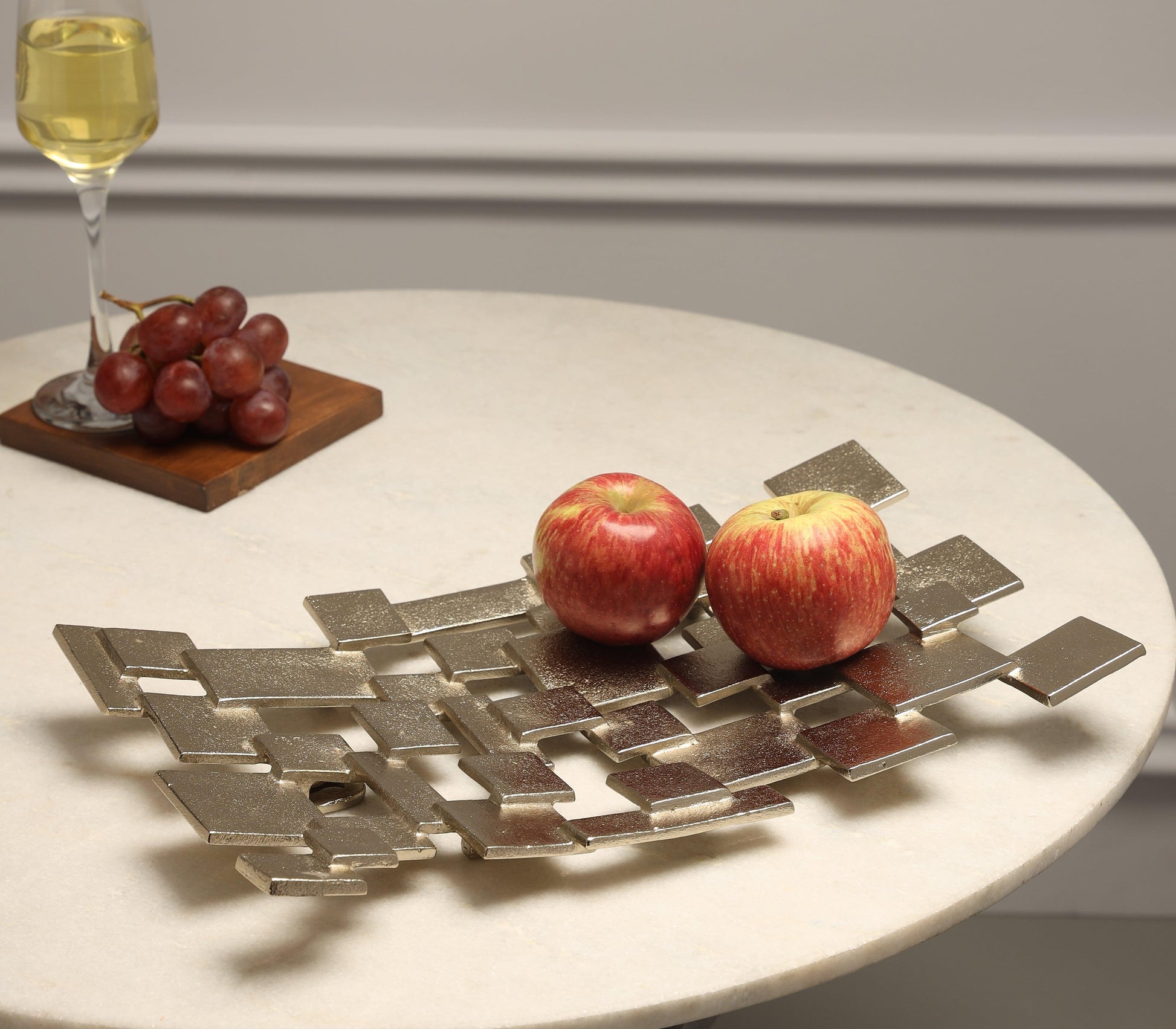 Inspired by the symmetry, the building blocks platter is made of expertly crafted gold finished aluminum. Unlike any other, the piece is sure to draw attention at your next get together. Shimmering through any old presentation, this is a must have for decor connoisseurs.