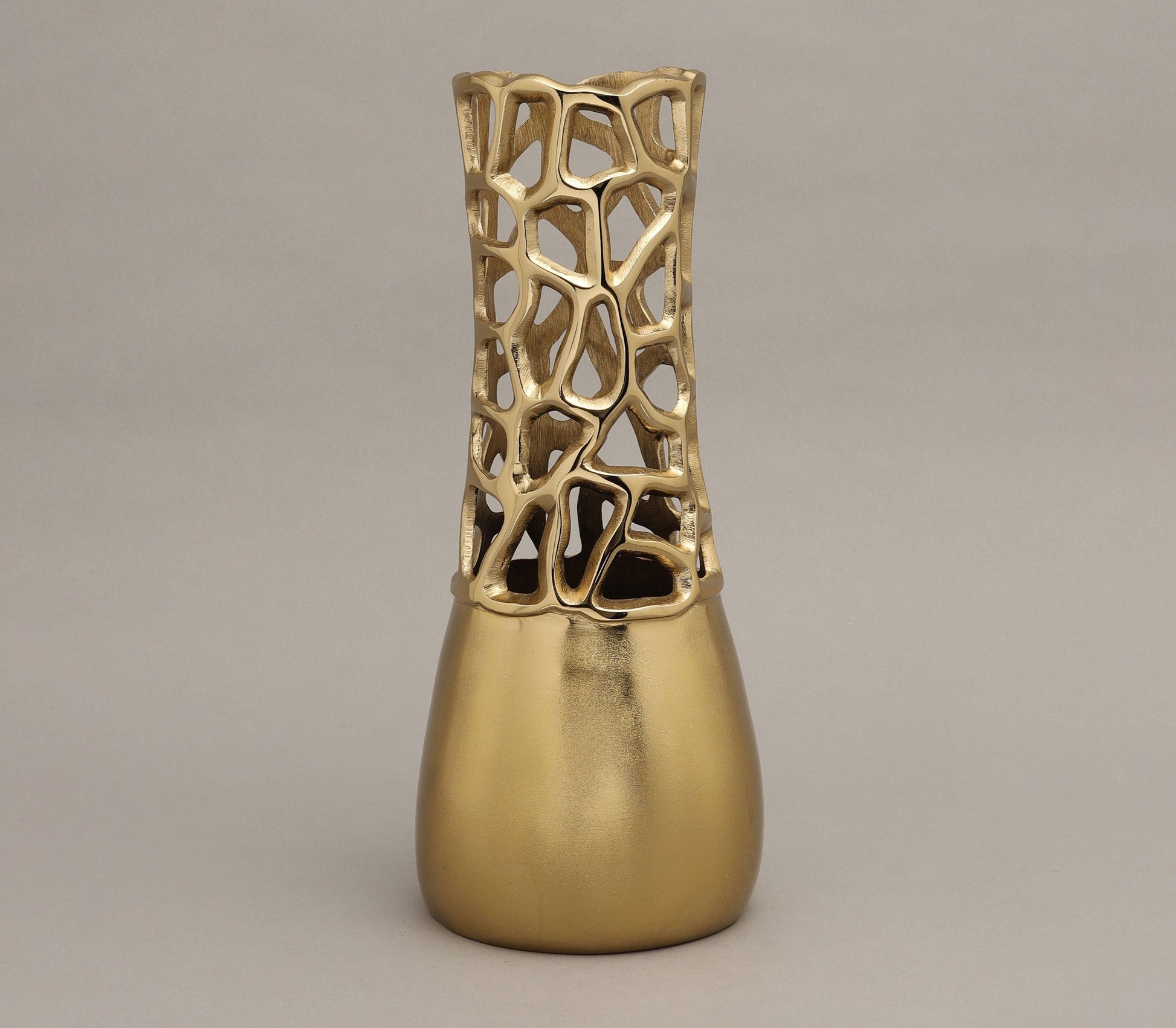 Leave out your flowers to bask in the glory of the gold finished aluminium vase. The sierra mesh vase reflects a gleaming shine when kept on the table as a decorative piece.