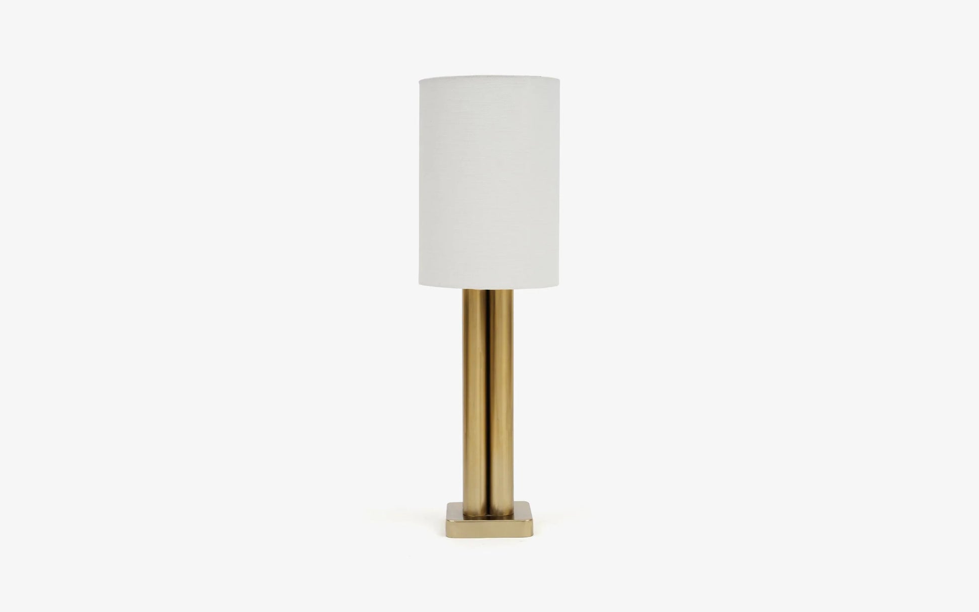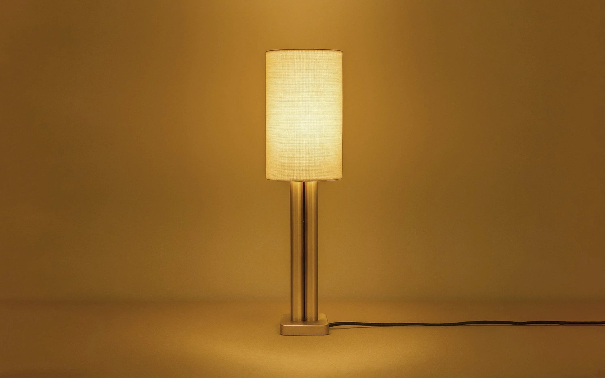 Shining bright in the gold shade with a softly tapered fabric shade, the Solis Table Lamp offers contrast and calm. A sculptural base with a minimalist and architectural soul and ideal for consoles or warm and cozy corners.