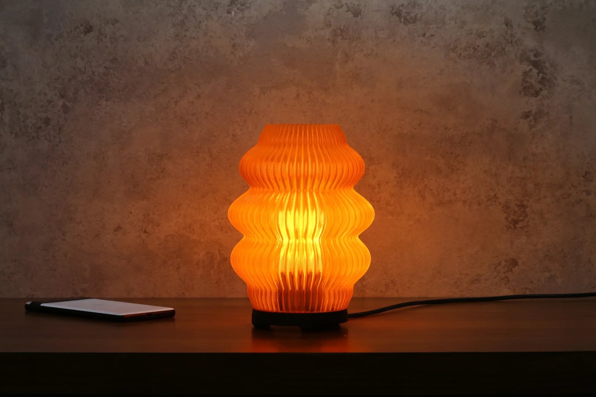 Noir Ripple Table Lamp speaks in waves. With its sculpted, rhythmic curves and a soft amber core, this lamp transforms any room into a serene escape. Its ripple-textured surface blends light and shadow in a hypnotic dance.