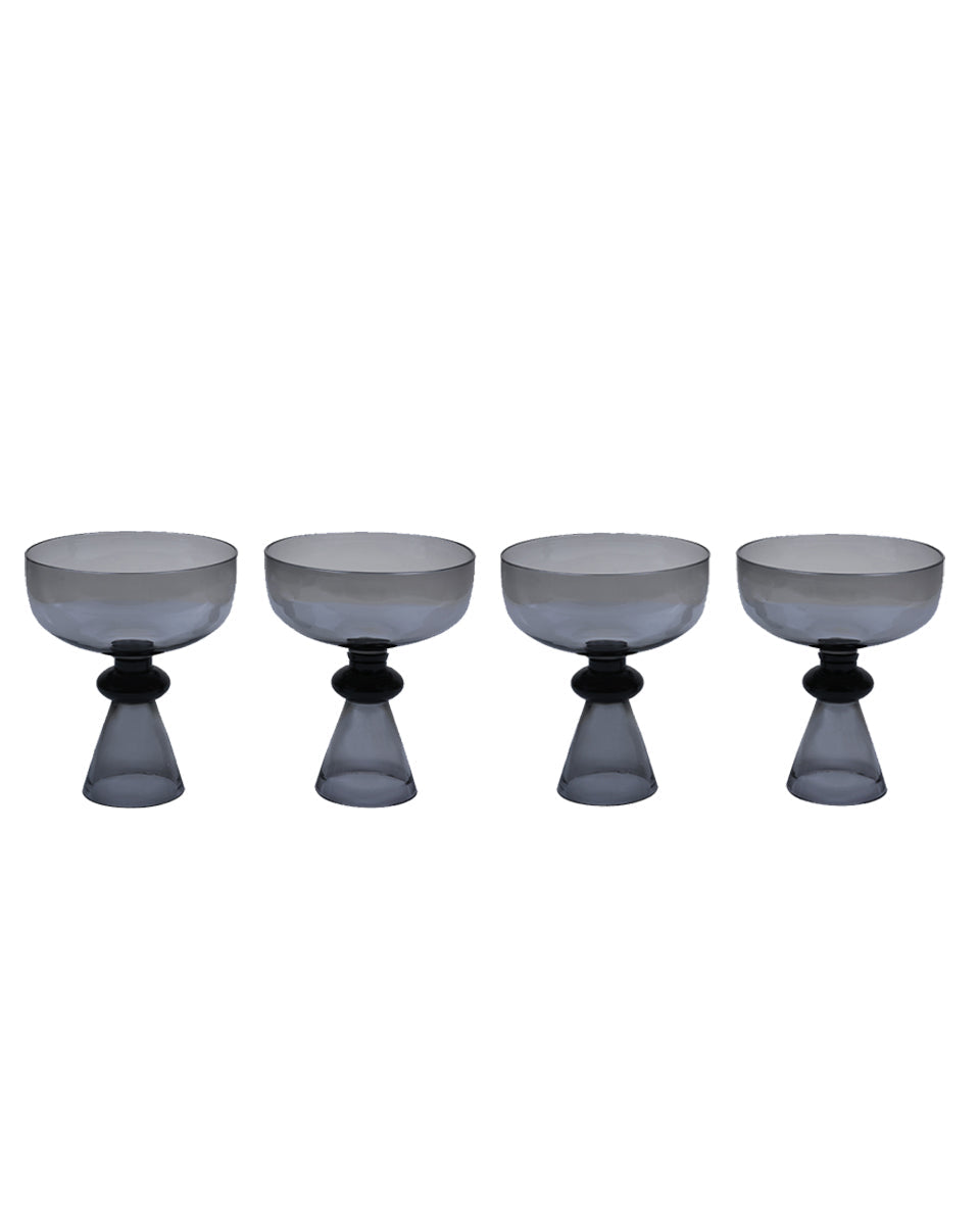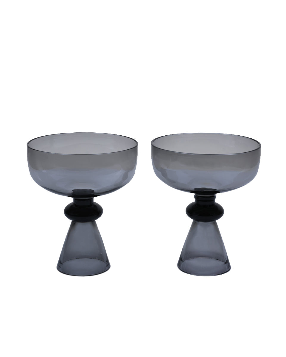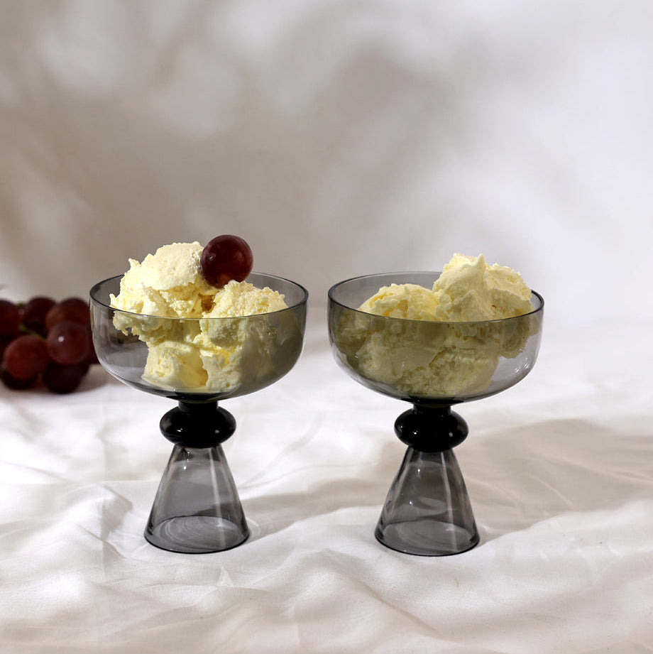 Handcrafted in glass, this set of two dessert bowls features a sleek black finish and a modern design. Perfectly sized for serving ice cream, desserts, or even drinks, these bowls combine contemporary elegance with versatile functionality, adding a sophisticated touch to any table or occasion.