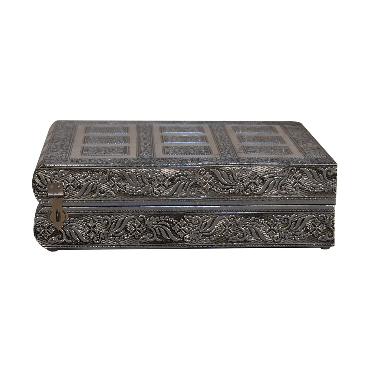 This jewelry box is smart, chic, fashionable, and perfectly designed for your convenience. This box has a fully-lined, violet cotton velvet interior, with little compartments to store all your favourite pieces, as well as 2 ring, or bangle rolls and a small mirror on the lid. The ideal piece for your chest, dressing table or as a gift for friends and family.
