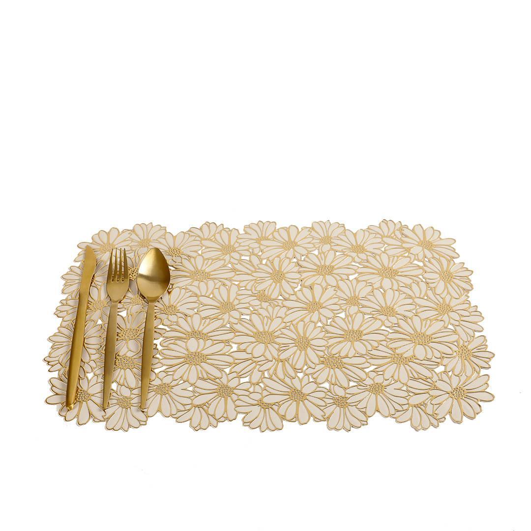 Bring a touch of botanical elegance to your table with the Carla Placemat. Featuring a floral rectangular design in a luxurious gold hue, it adds a sophisticated, nature-inspired accent to your dining experience.