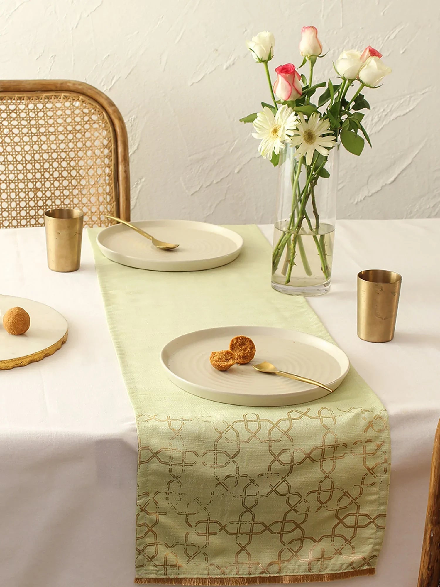 What's inside? Our set of 2 Mandav runners made of 100% polyester with foil print detailings and golden lace on both edges.