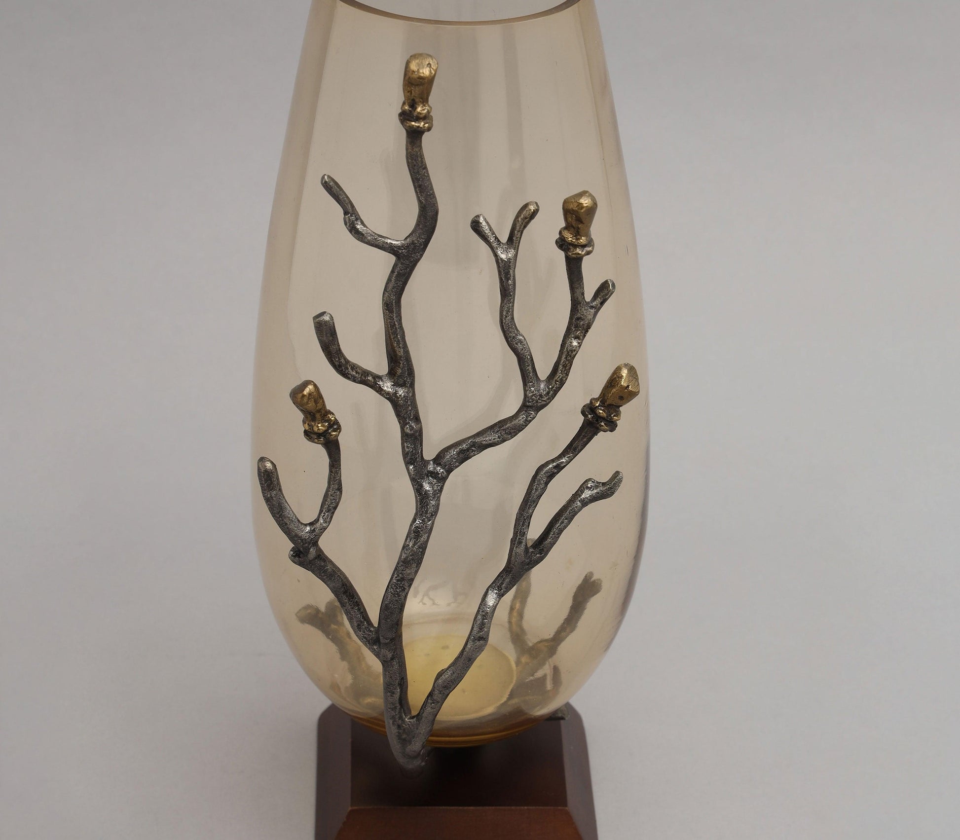 Gold & Rustic Black Finished Aluminium with Walnut Finished Wood and Smoke Luster Glass