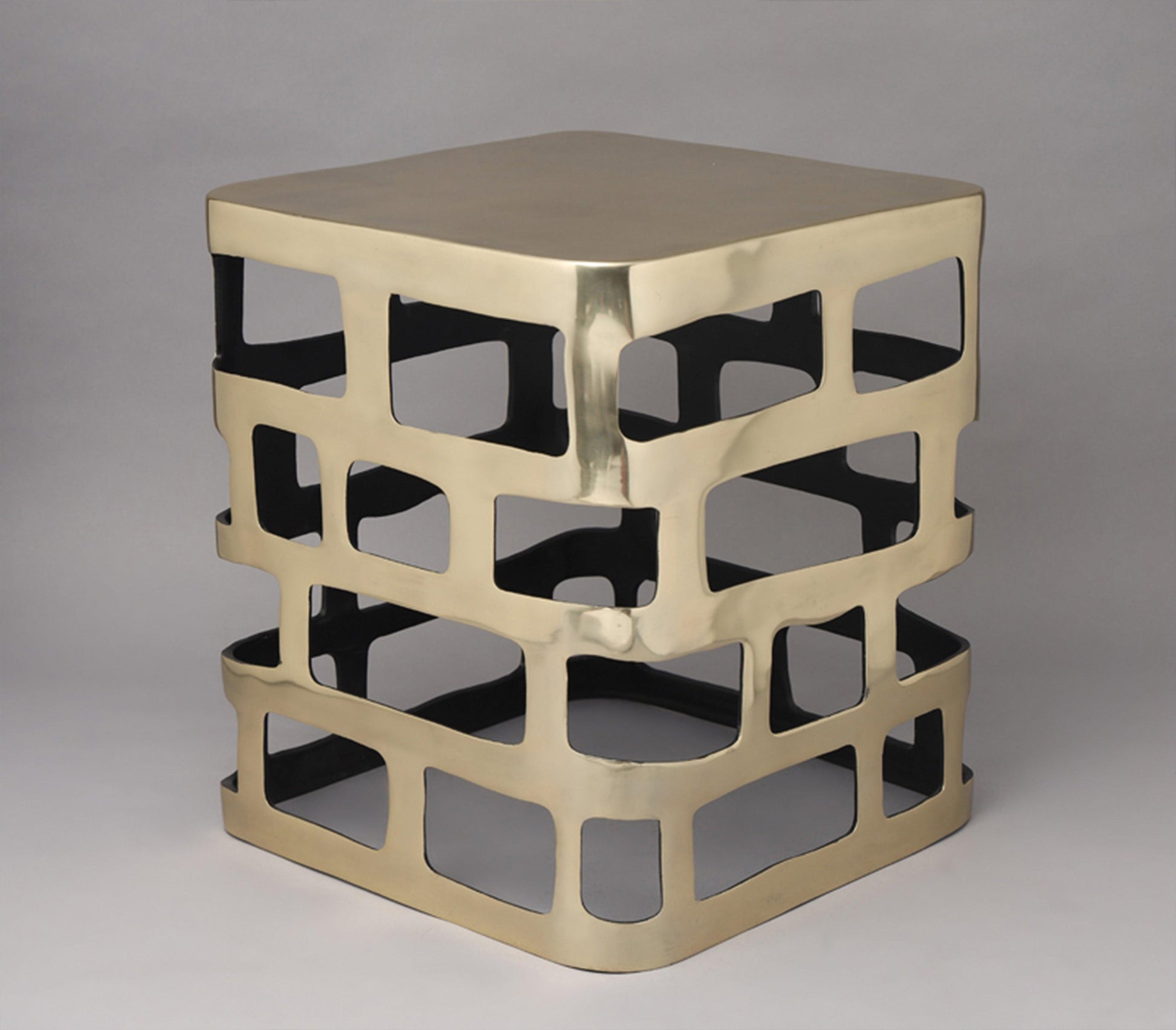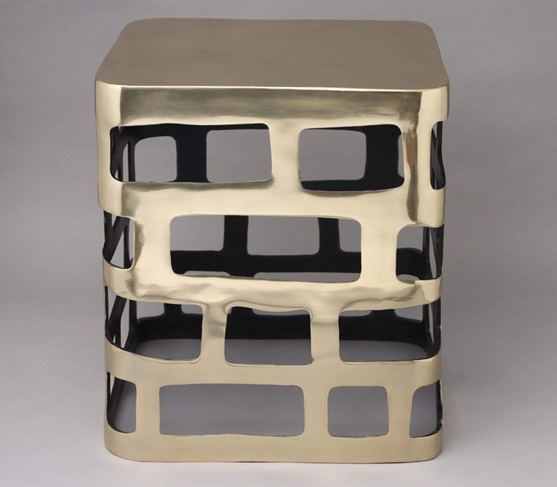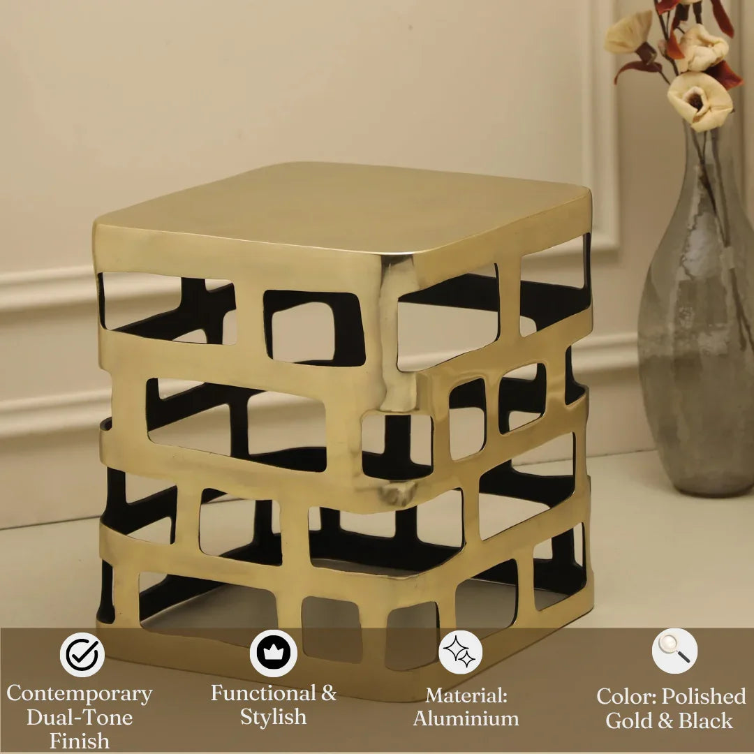A creative approach to modern contemporary design, the orthogonal stool is made of polished gold and black powder coated aluminum. This edgy yet exquisite piece of decor is sure to bring out the best in any contemporary space. Place a few around your coffee table.