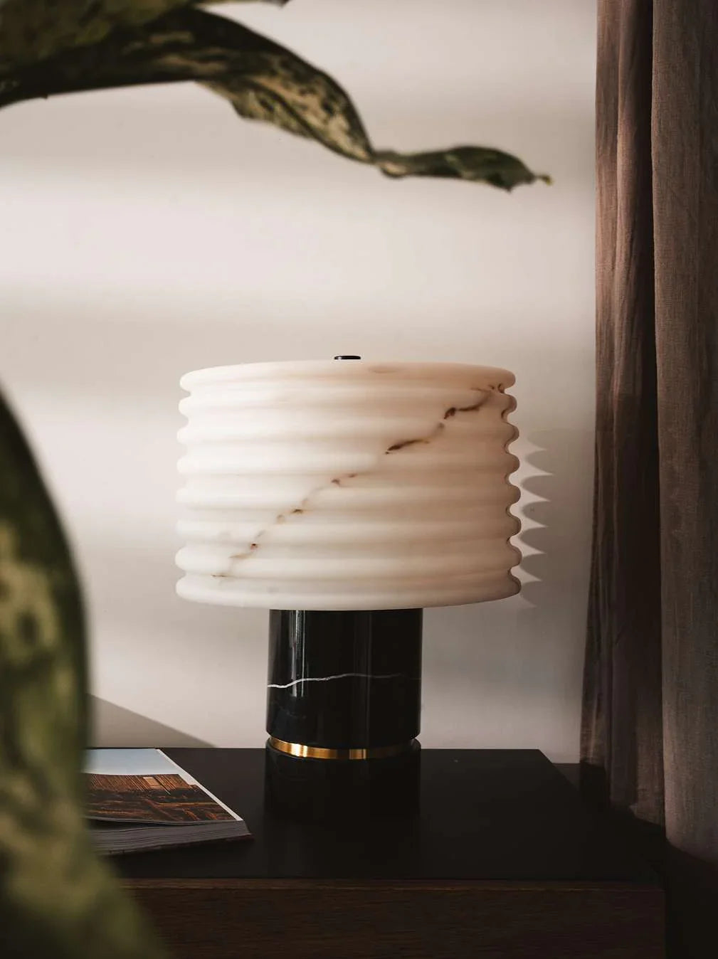 Ripple Designer Marble Table Lamp for Living Room | Luxurious Black Marble Base with Alabaster Shade Lamp