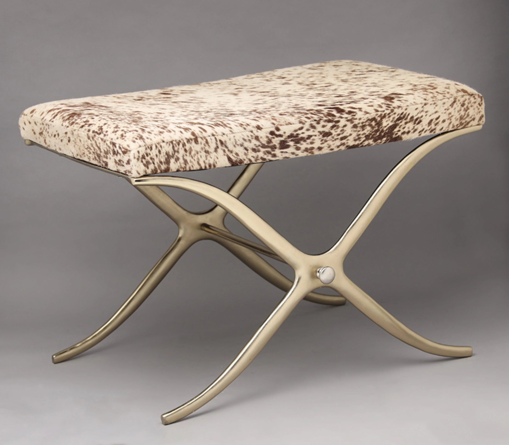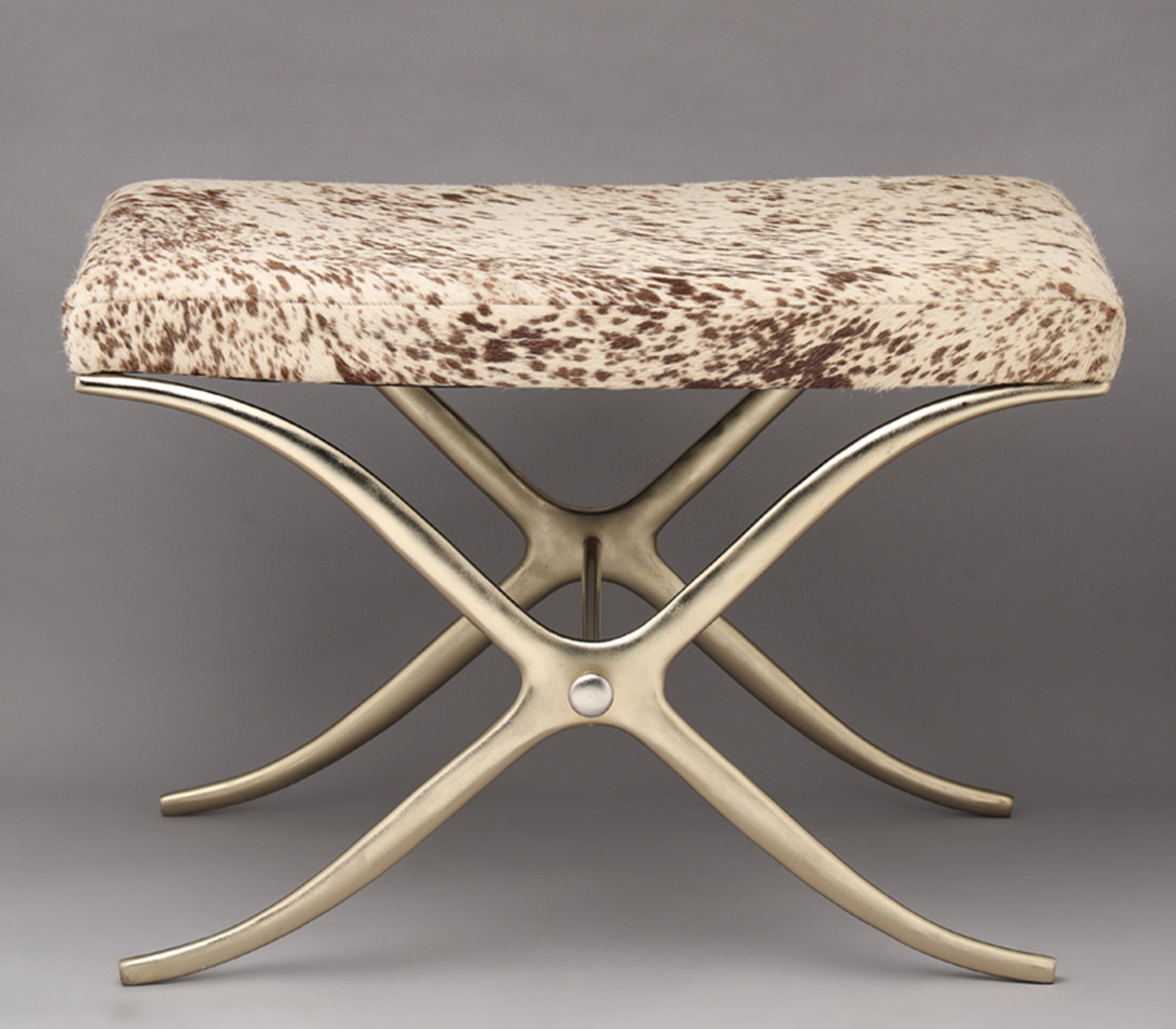Nothing spells opulence like this stunning bench which is impeccably designed with hairon leather and a contrasting gold finish on aluminum. This bench not just elevates the design scheme of your home but also adds a rustic yet luxurious vibe to your living space.