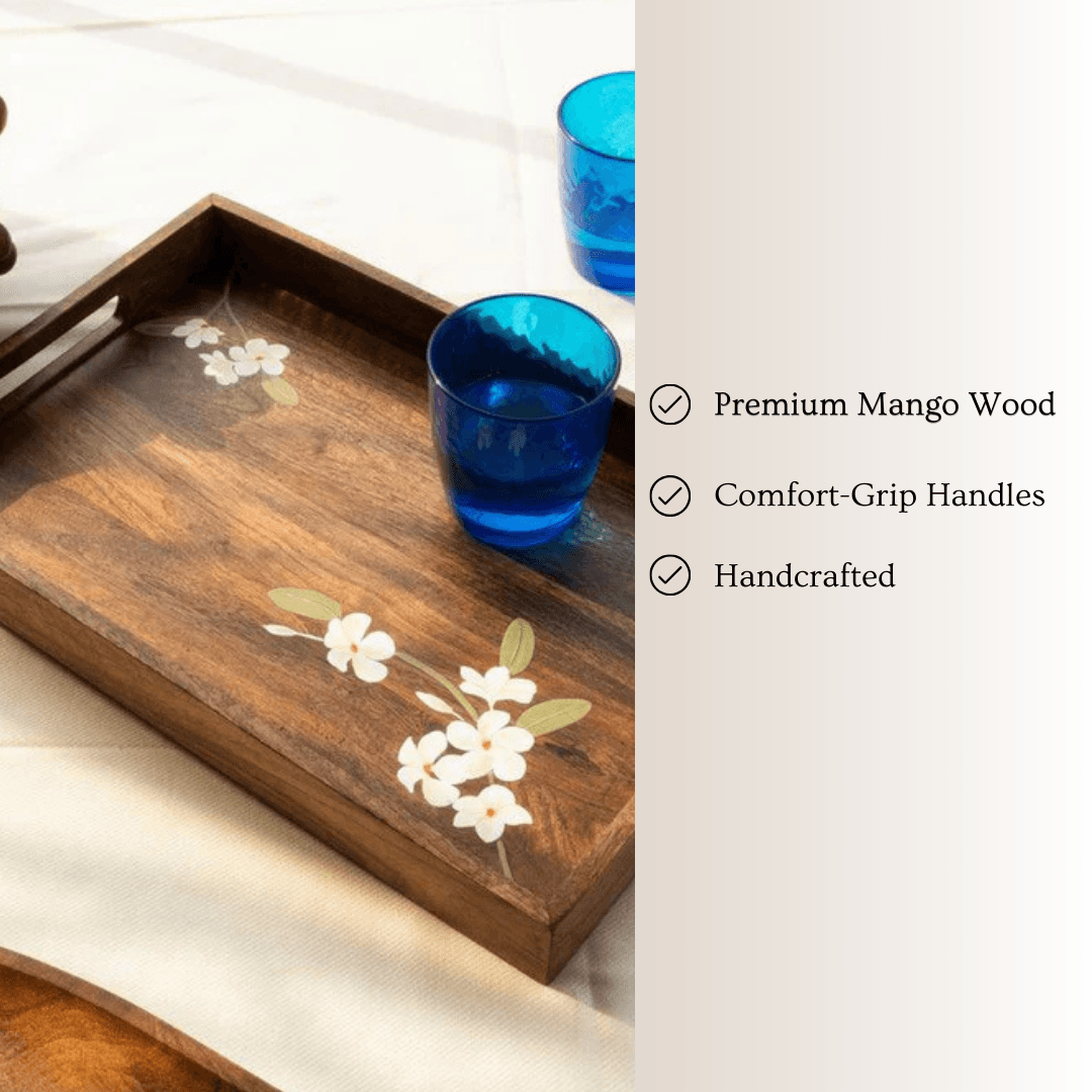Bella Mango Wood Serving Tray | Snacks Serving Tray for Home Kitchen & Cafe -Pack 1