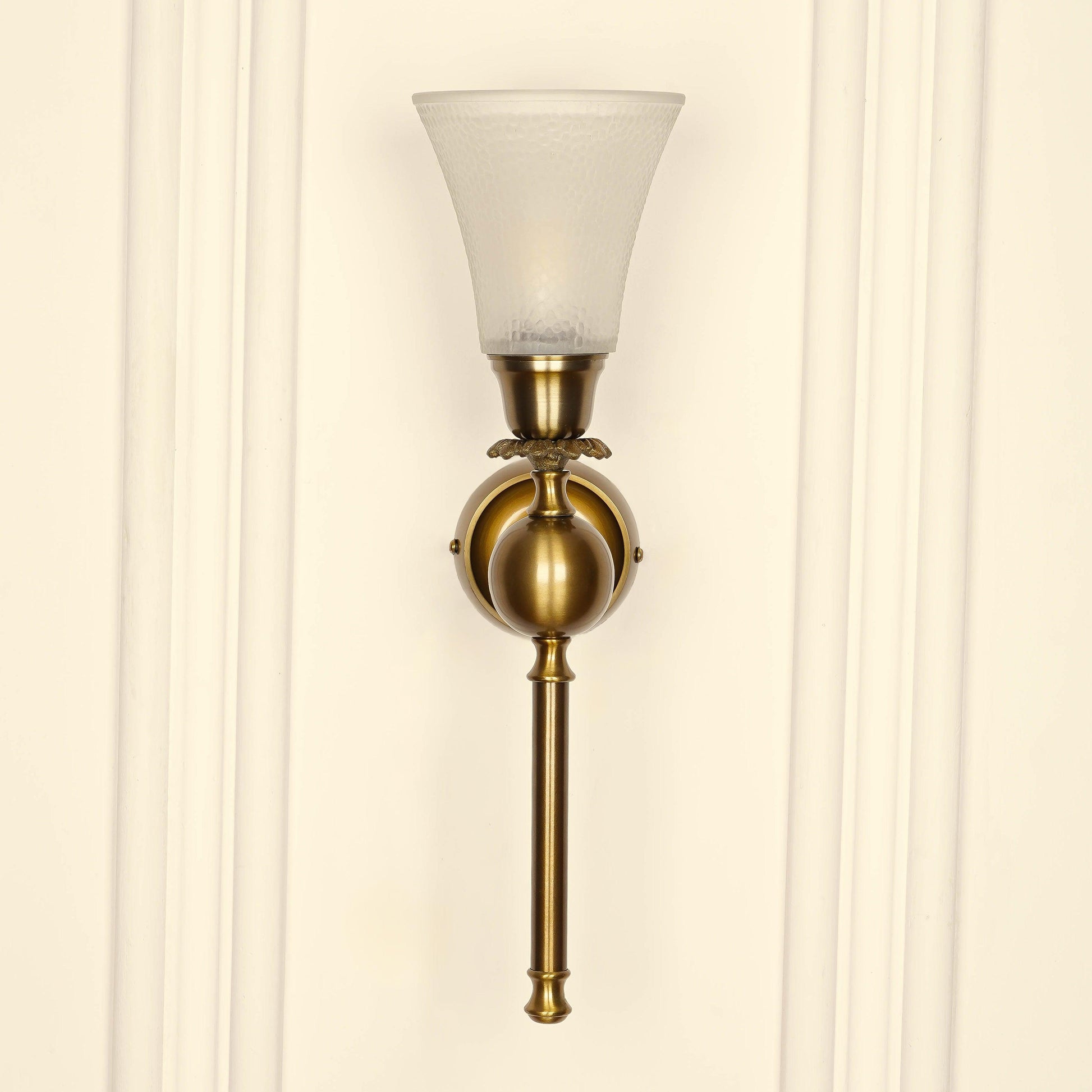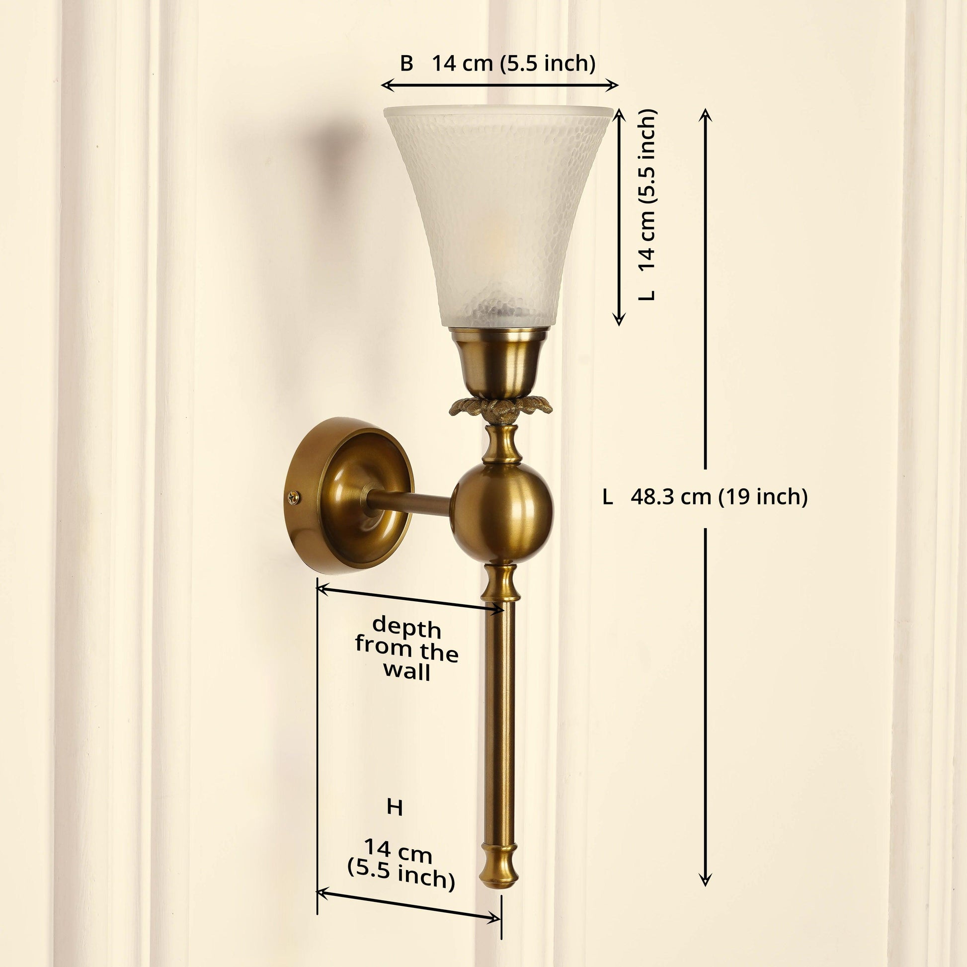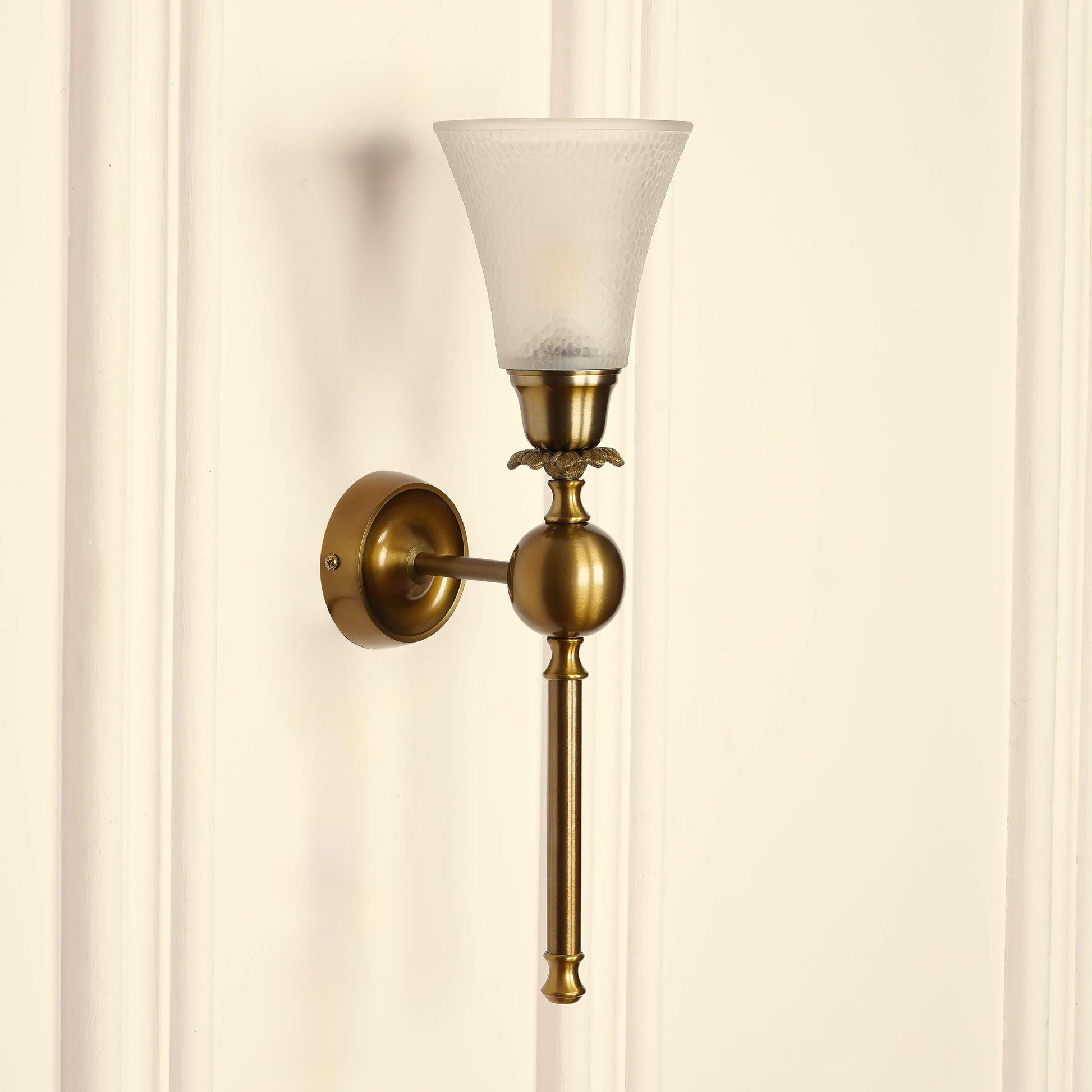 Brass Antique Finish Ball Wall Lamp with Frosted Hammered Glass Shade