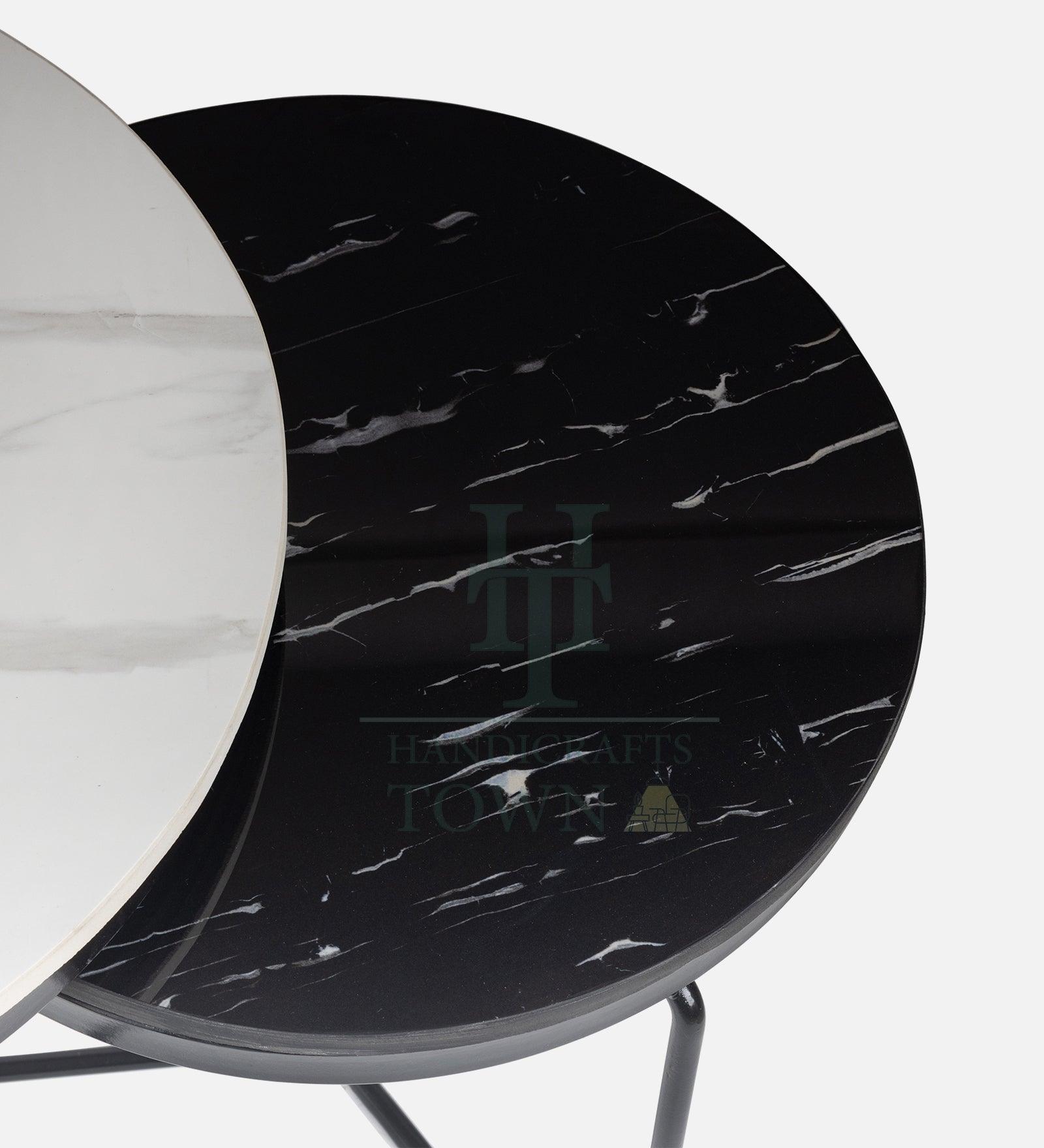 Luxury Nesting Tales may acquire a modern round-top coffee table made of a Metal stand with a White and Black Marble top, A beautiful item that can be used in a variety of ways to accentuate any design and give maximum flexibility for one residence. Using a combination of marble and metal table is built to withstand the rigors of daily use. A wet towel is all that need to clean the trendy coffee tables for the living room. The Marble top innovation of this circular nested coffee table allows it to be raised to the ideal writing, reading, or drinking height. Alternatively, the mini table may be placed beneath the larger table to maximize the diversified interests.