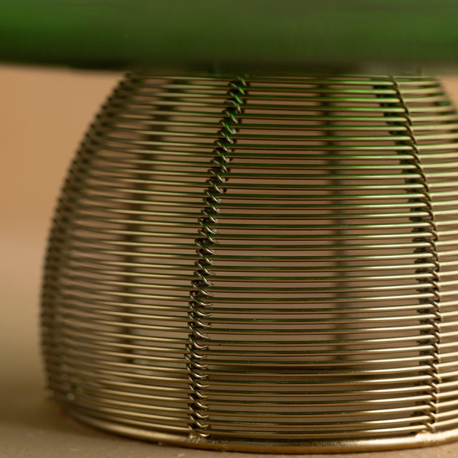 The Urja Purple tray from the Horizon collection beautifully marries sustainability with artistic flair. Crafted from recycled soda glass and hand-woven MS wire, this piece showcases the skilled handiwork of local artisans in glass casting and metal weaving. Its design reflects a contemporary global aesthetic while celebrating traditional craftsmanship.