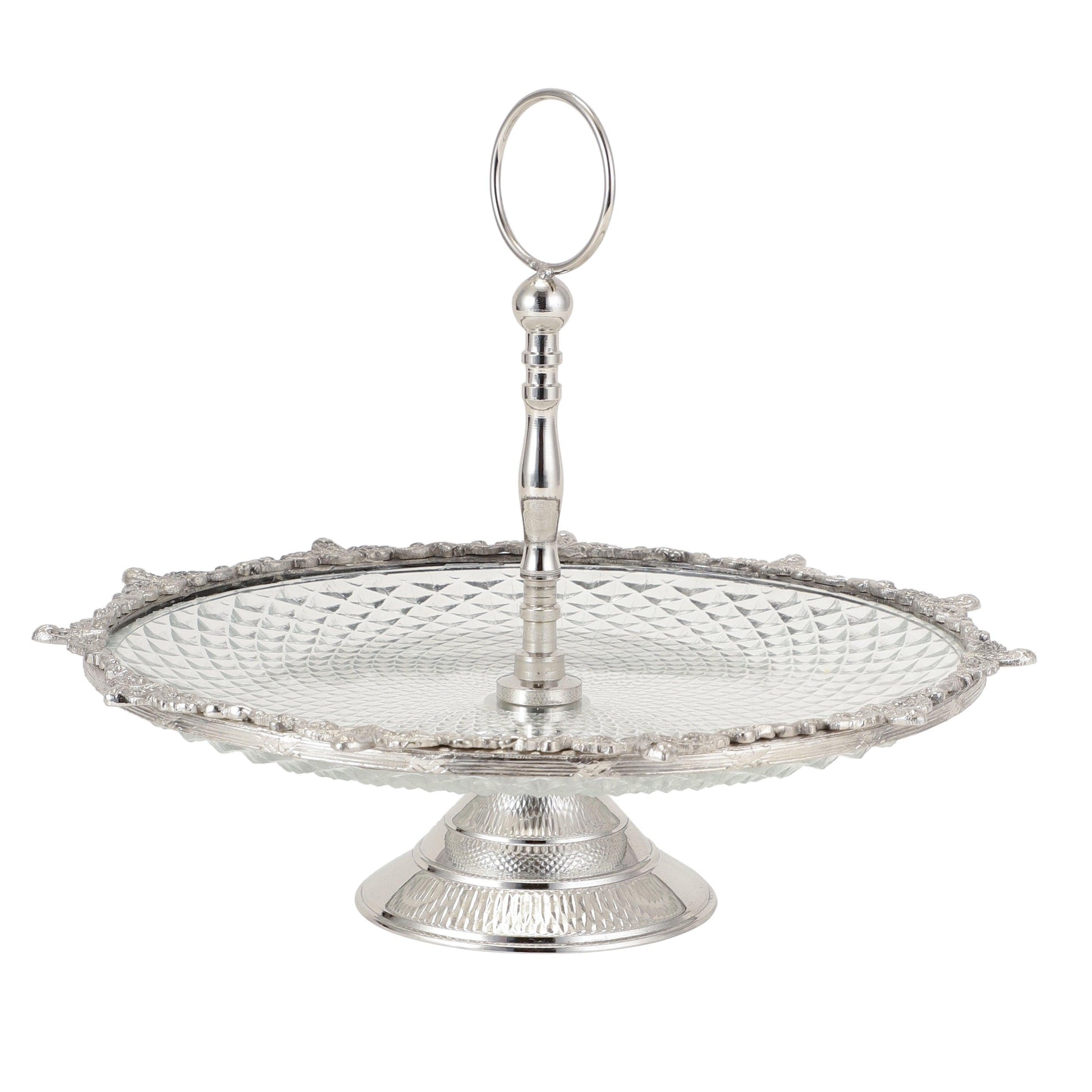 the Crystal Spike Cake Stand, a stunning showcase for your culinary creations. This elegant stand features a single layer of crystal glass adorned with spiky diamond-shaped cuts, creating a mesmerizing display. With its brass accents adding a touch of sophistication, the Crystal Spike Cake Stand is the perfect centerpiece for showcasing desserts and treats in style.