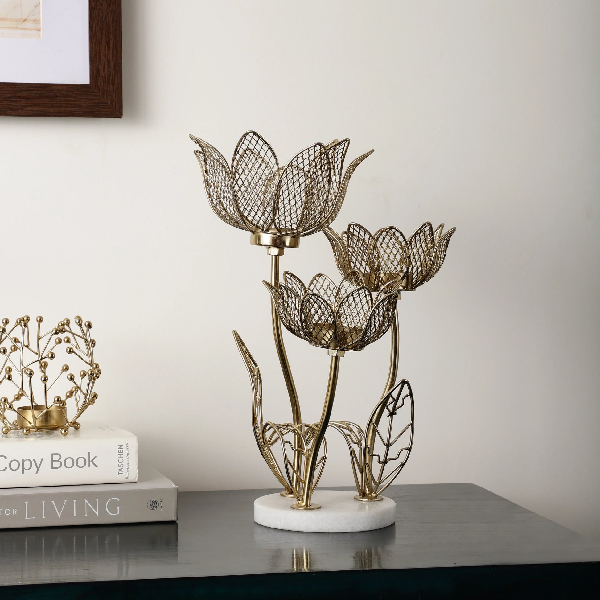Lotus Triple-Tealight Candle Stand With Marble Base