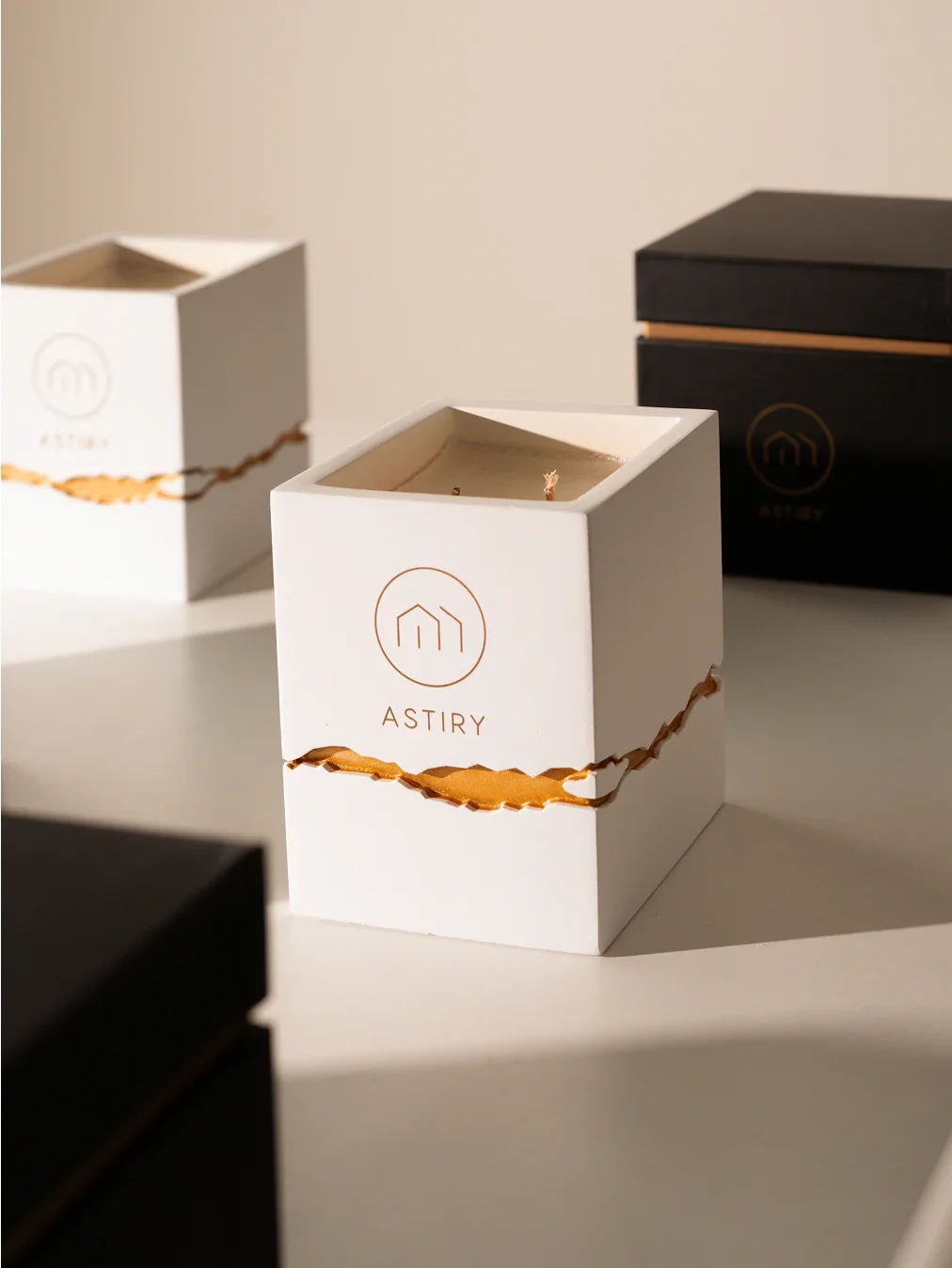 The Astiry Concrete Scented Candle is a premium home fragrance crafted from soy wax and infused with crystal-charged essential oils. Housed in a sleek concrete jar, this highly scented candle burns for 50–60 hours, making it perfect for gifting, home décor, and creating cozy spaces.
