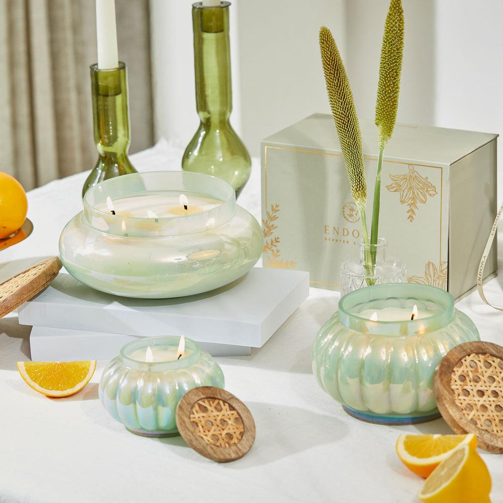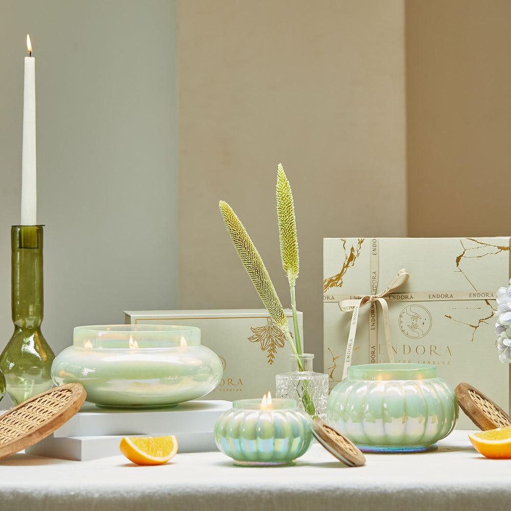 The Lustre Glass Candle is a true embodiment of sophistication and elegance. The unique combination of the glass vessel with a delicate lustre finish and a handcrafted wooden cane lid creates a visually stunning piece that adds a touch of charm to any space.