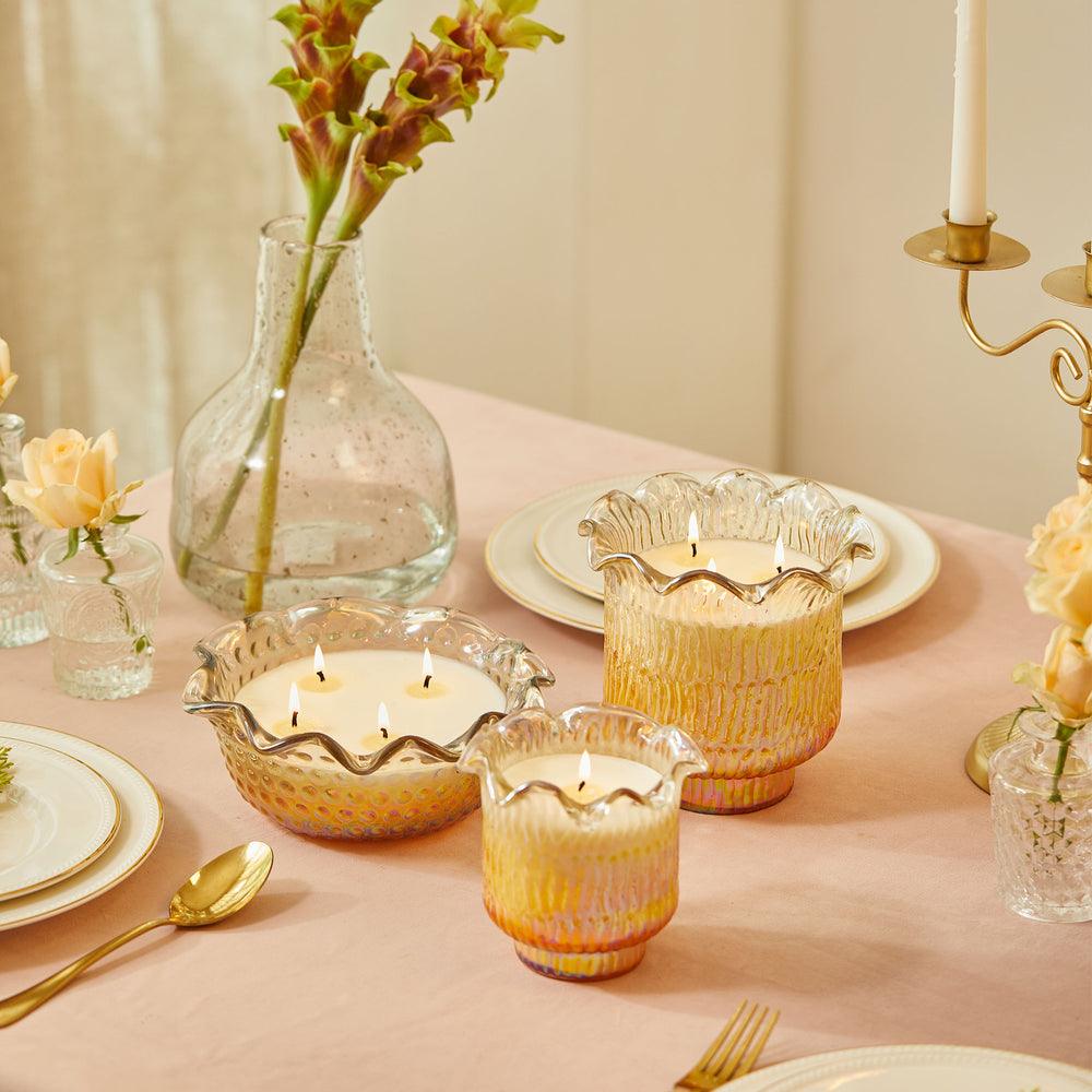 Experience the perfect fusion of scent and style with this elegant candle, and let its luminous glow and sophisticated aroma elevate your home’s ambiance.