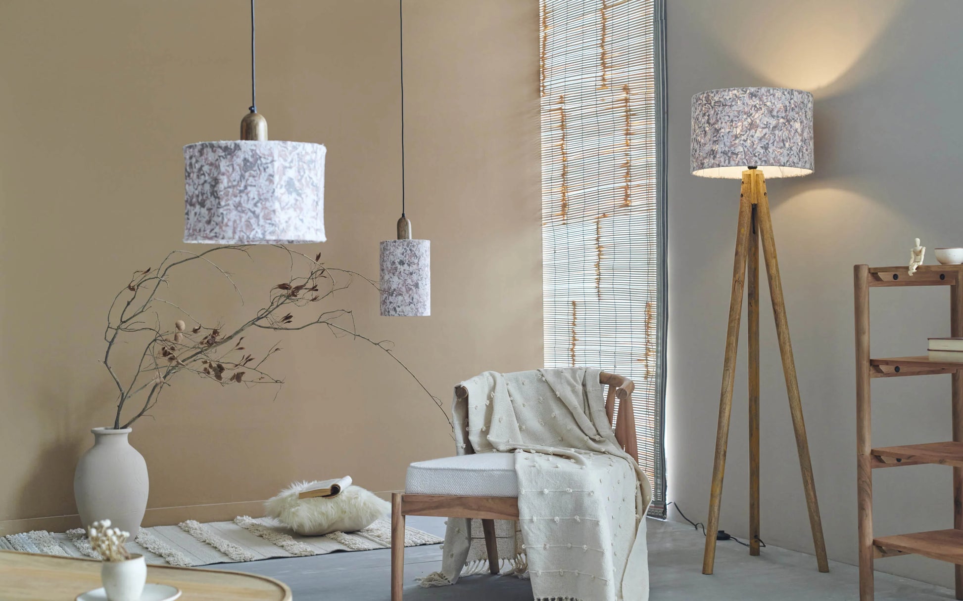 Flake Hanging Lamp Beige Tall