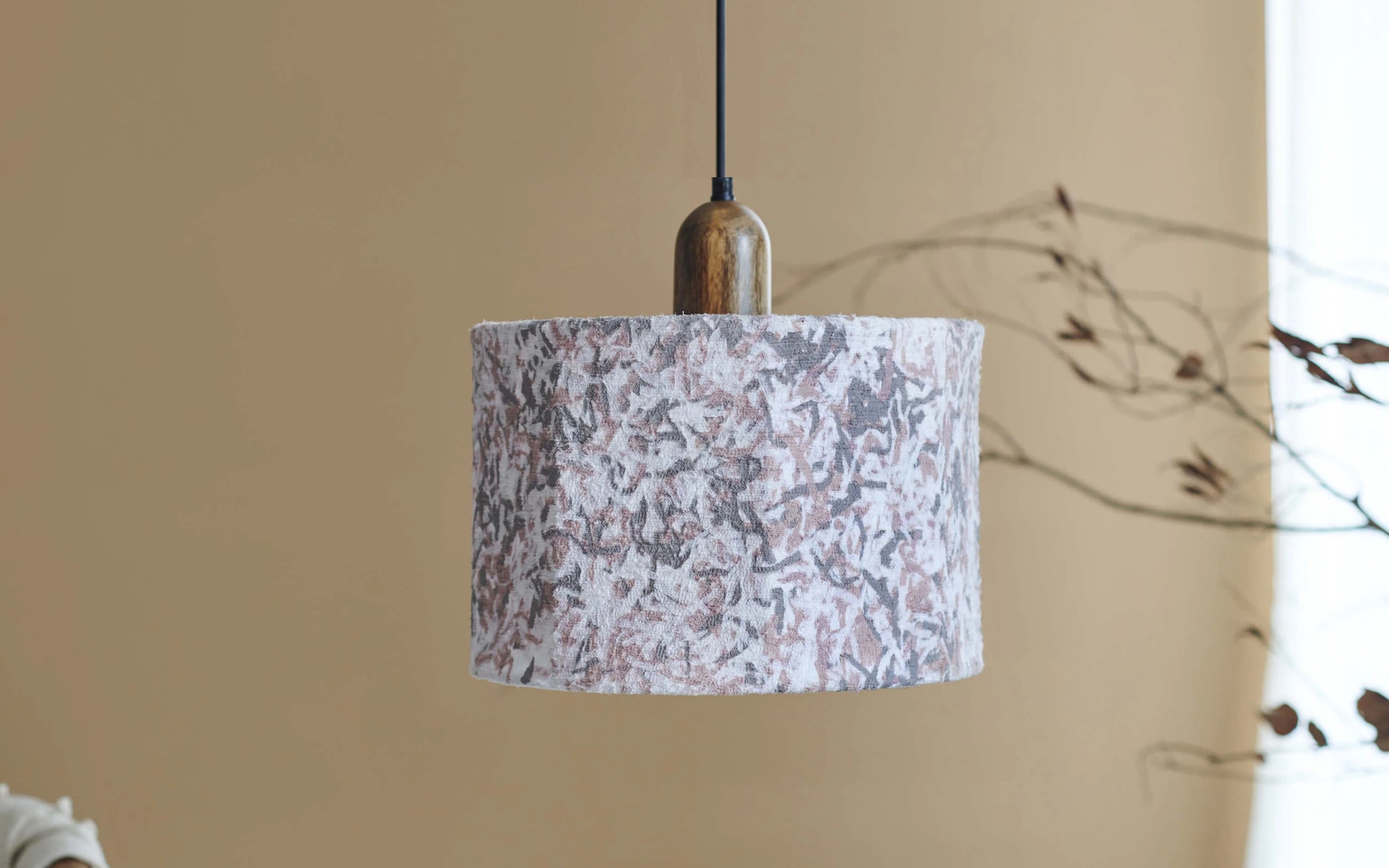 Flake Upcycled Fabric Hanging Lamp with Mango Wood | Sustainable Beige Pendant Light