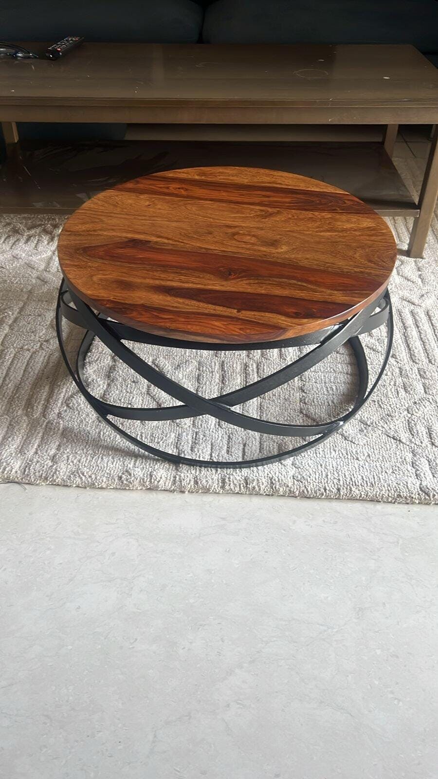 Wood & Black Metal Center Table For Living Room | Sheesham Wood Coffee Table | Tea Table