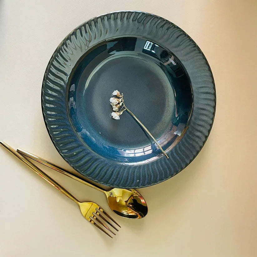 A perfect pasta plate for a perfect pasta day! Serve your favorite dishes in style with this Deep Green Ceramic Pasta Plate, perfect for pasta nights, salads, and everyday dining. Elevate your dining experience with this Deep Green Ceramic Pasta Plate, perfect for pasta nights, salads, or everyday meals. Made from high-quality ceramic, this durable plate features a 17.78 cm diameter ideal for individual servings, while its rich deep green finish adds a touch of sophistication to your table setting. Designed for both functionality and style, it’s easy to clean with gentle liquid soap and handwashing, making it perfect for home use, dinner parties, or gifting to food enthusiasts. Ideal for home use, dinner parties, and gifting to culinary enthusiasts, this ceramic pasta plate combines functionality with modern design for a perfect dining experience.