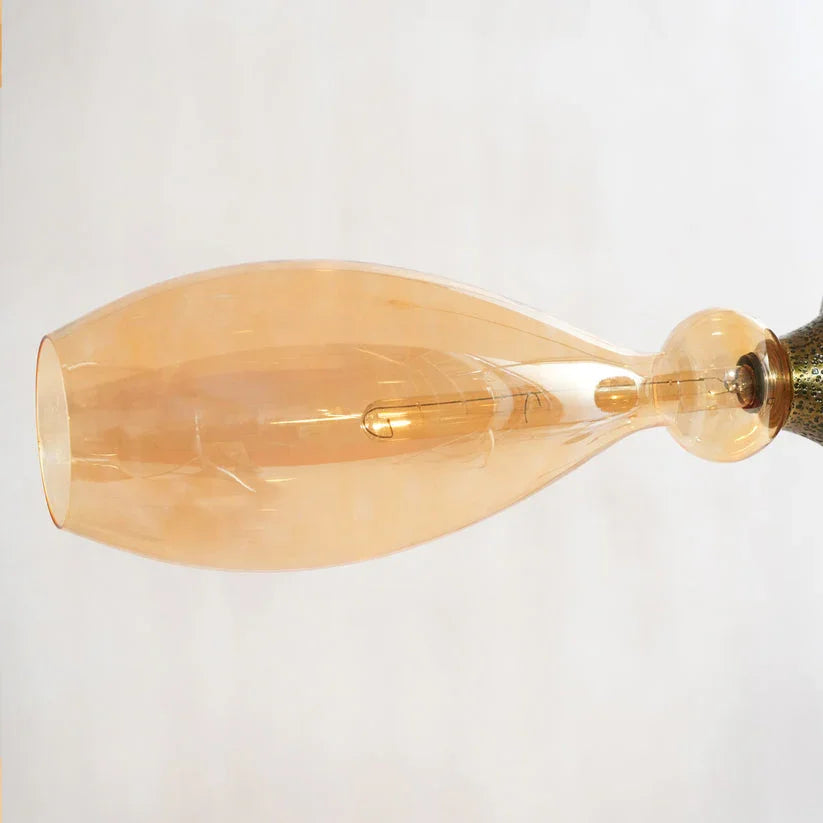 The Alba Hammered Chandelier Lamp captures the tranquil essence of sun rays. Handcrafted from recycled glass and aluminium, it celebrates the artistry of traditional glass turning and hammered antique brass finish on metal . With its minimalist yet deeply evocative design, the lamp harmonizes with modern global aesthetics offering a timeless elegance that transcends trends and resonates across cultures.