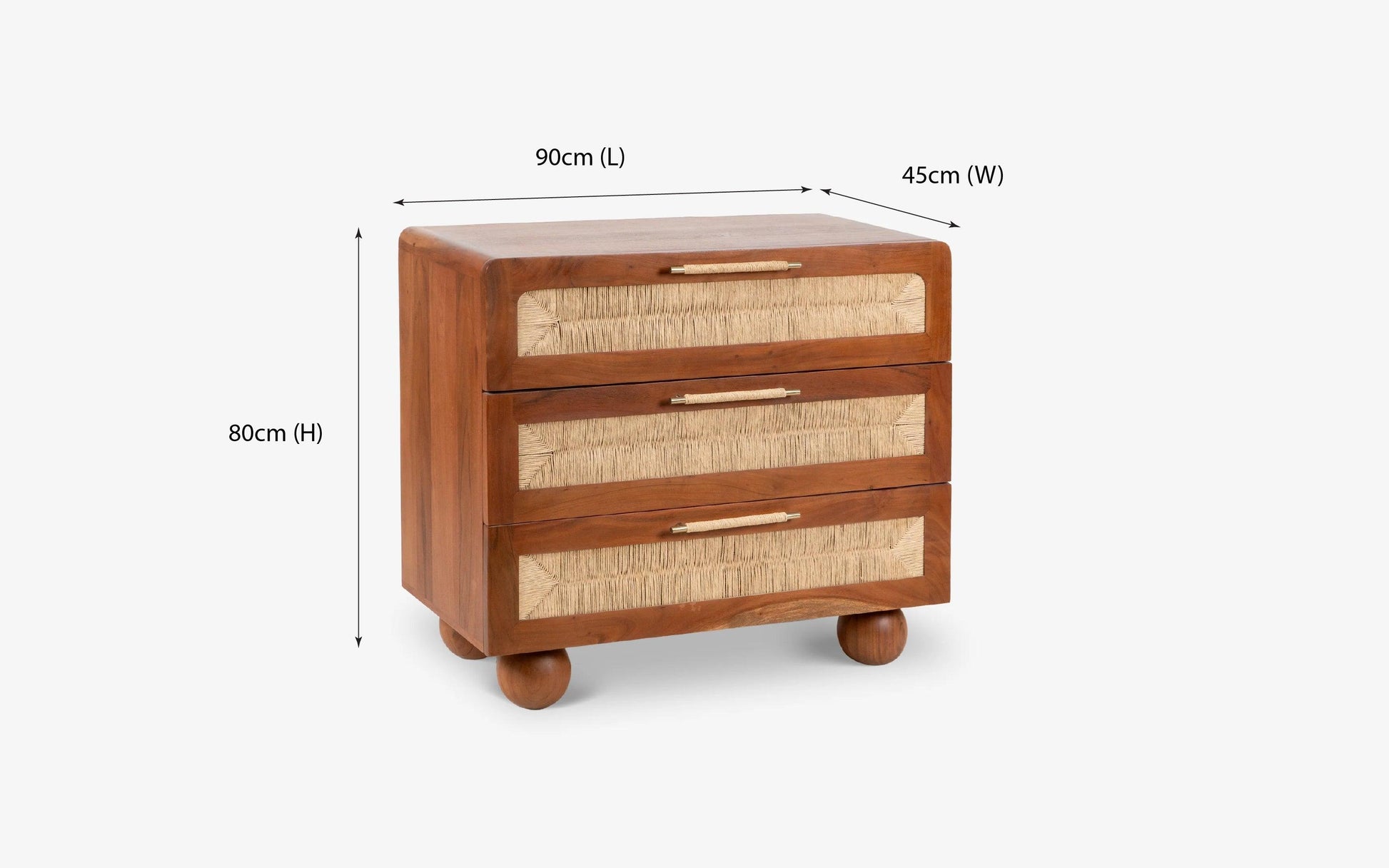 The Abacus chest of drawers combines elegant design with optimal storage. Crafted with hand-woven Danish cord and a sturdy acacia wood body, it features stylish spherical legs, making it a great addition to any bedroom. This versatile piece serves as a bedroom chest, closet organizer, or living room storage. Available as a three-drawer chest, it offers ample space and a perfect option for enhancing your home decor.