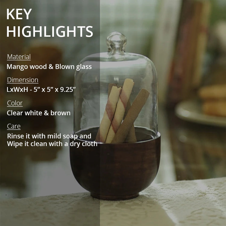 Corjuem Wooden & Glass Lid Cloche | Serving Stand For Chocolates & Table Decor