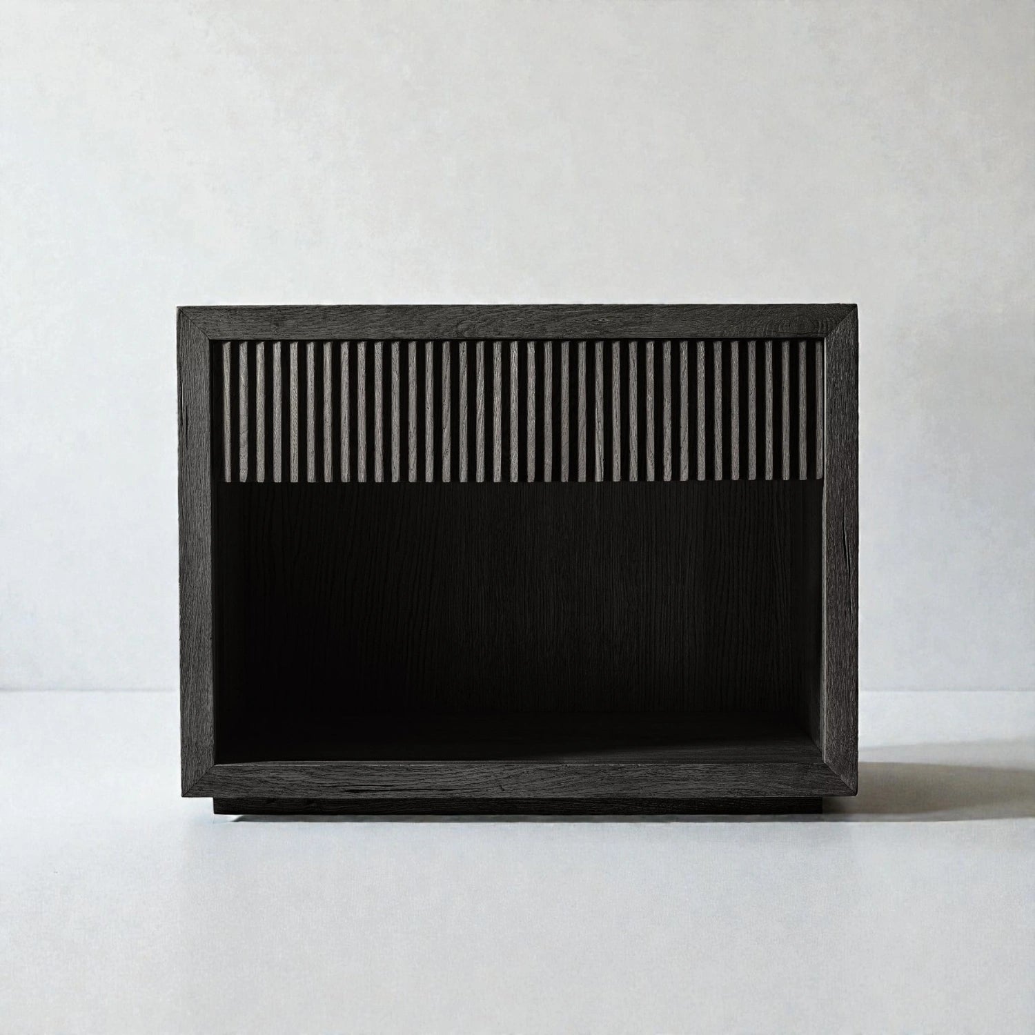REED 1-Drawer Ash Black Stained Bedside Table combines modern sophistication with everyday function. Crafted from solid ash wood and finished in a black stained tone, it offers a sleek drawer design—ideal for contemporary bedroom spaces.