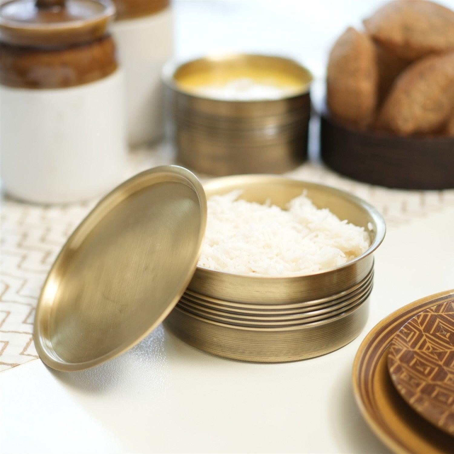 Barmer Brass Patila With Lid | Golden Serving Bowl For Dining & Kitchen
