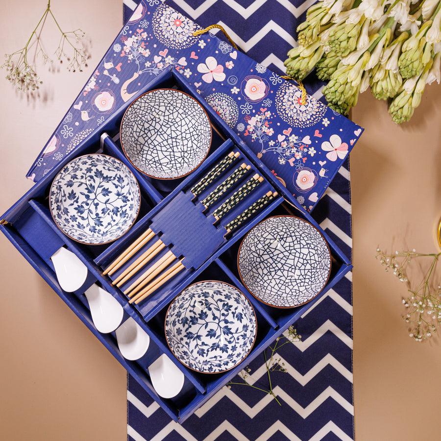 Japanese Style Ceramic Rice Bowl Set – 12 Pcs (Bowls, Spoons & Chopsticks)