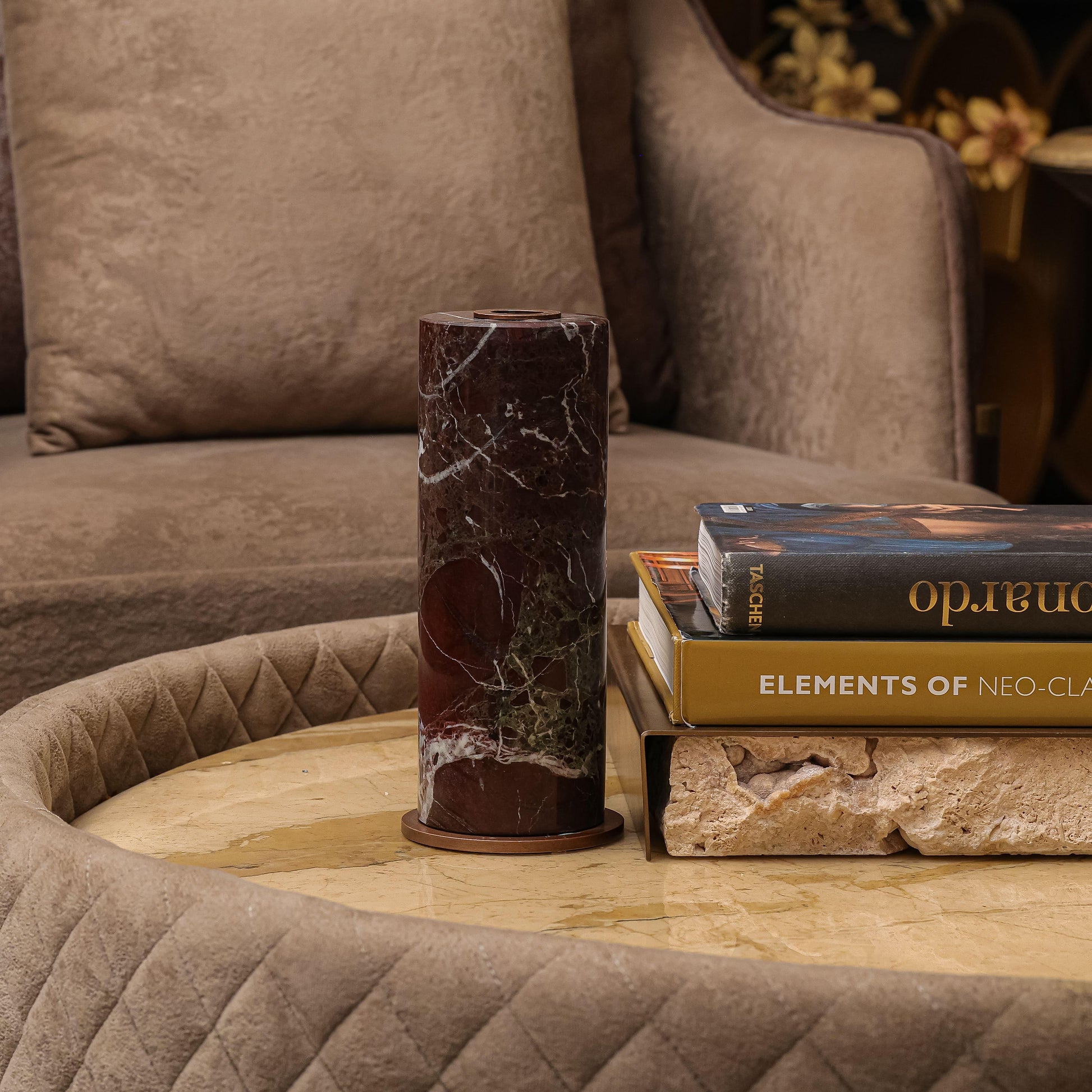 Add warmth and elegance to your space with this stunning Candle Stand in Brown. Designed in a sleek, modern style, it is perfect for creating a cozy ambiance in your home or at special events. The solid construction guarantees stability, complemented by its refined and elegant finish. Its large size makes it perfect for pillar candles or decorative shows. Whether used as a centrepiece or to enhance your room’s décor, this candle stand effortlessly combines style and function. Perfect for gifting or enhancing your personal space, this piece is a must-have for décor enthusiasts.