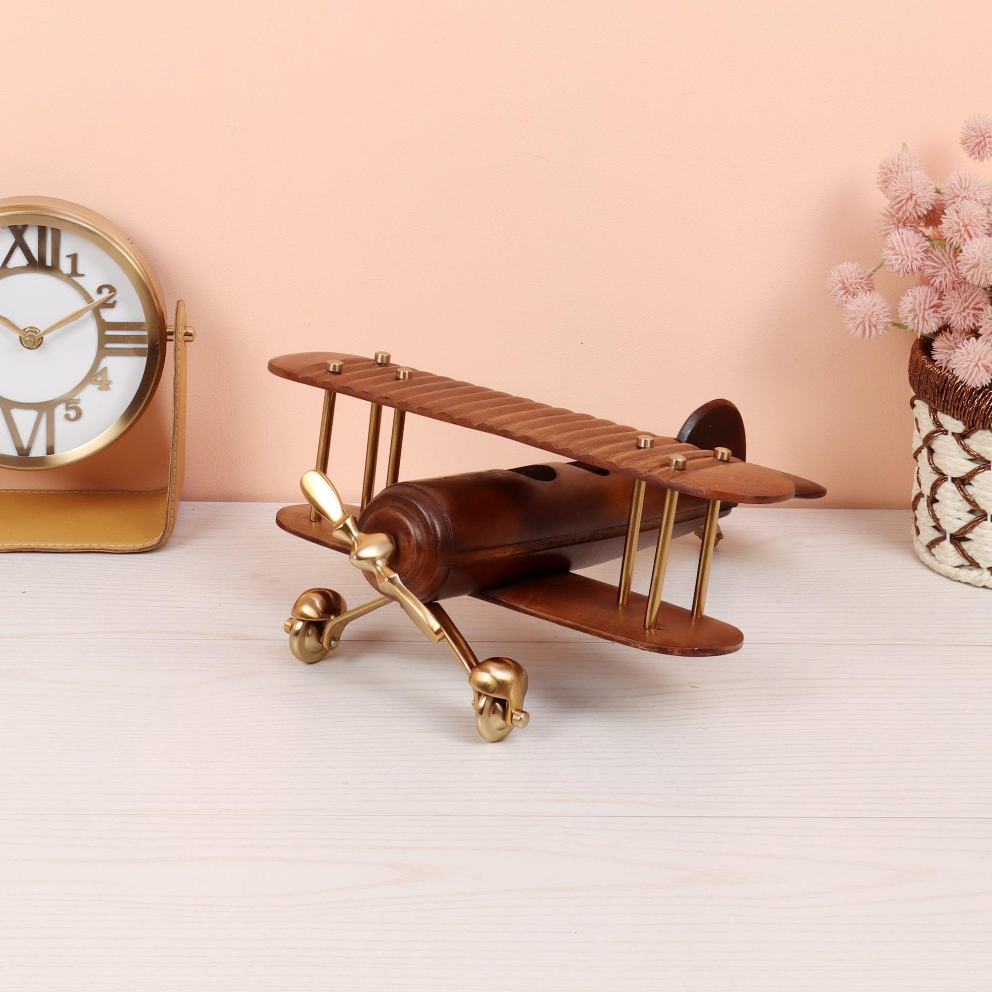 Golden Vintage Airplane Sheesham Wood Table Accent | Handcrafted Decor Airplane