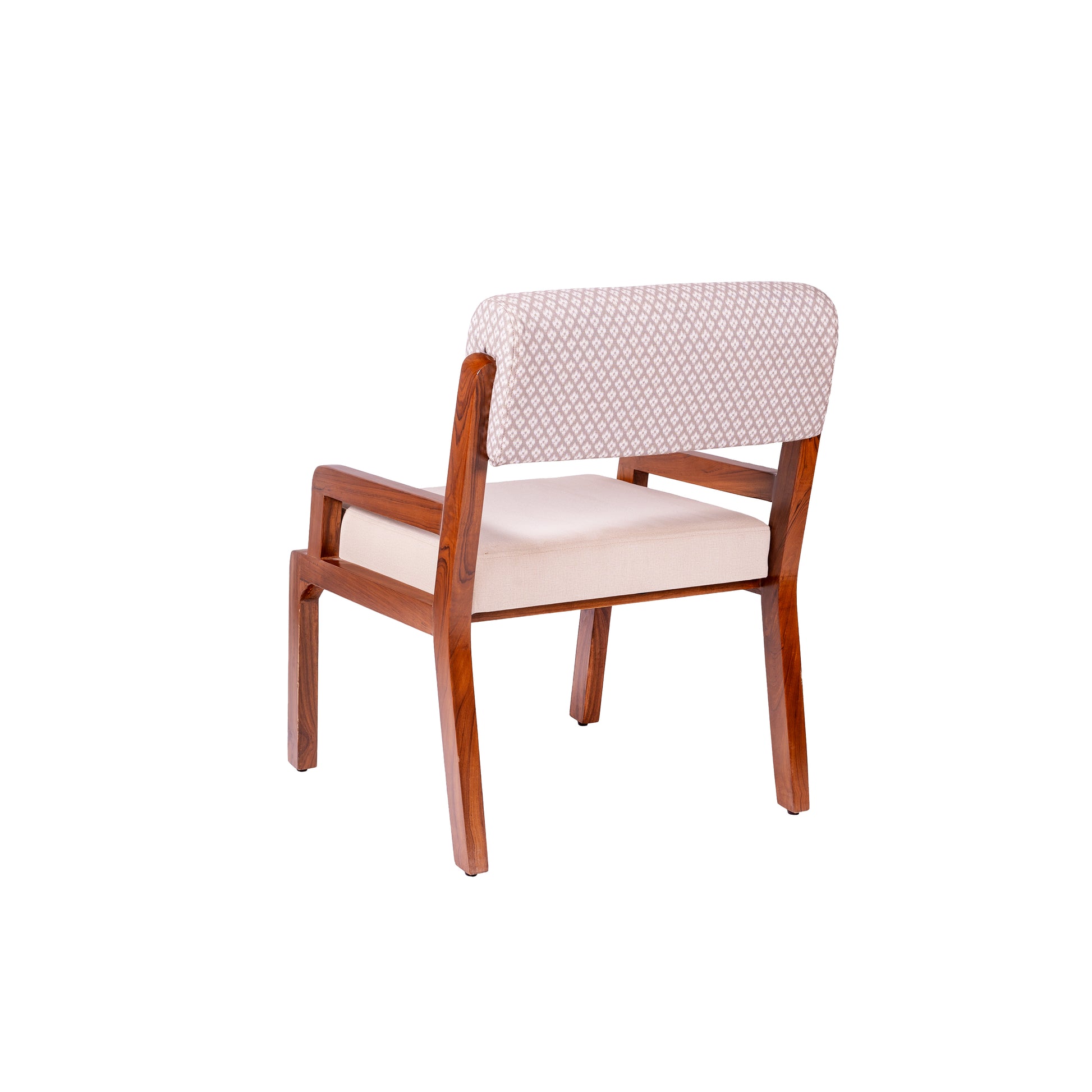 Zyra celebrates minimal strength shaped by nature’s endurance. Its form is rooted in solid teak, with clean lines that highlight craftsmanship rather than excess. The seat is upholstered in soft beige fabric, inviting long hours of comfort, while the backrest adds quiet detail through texture.