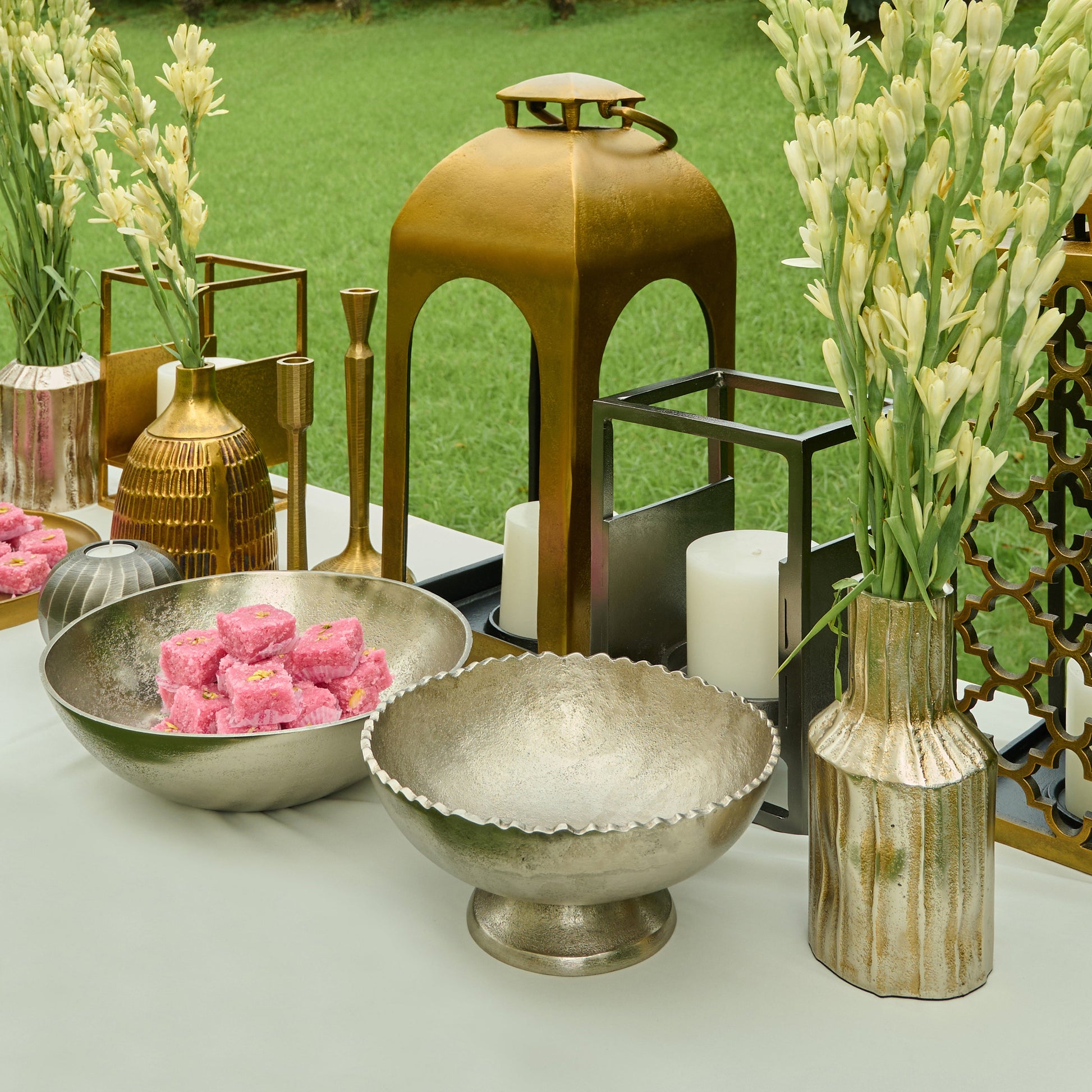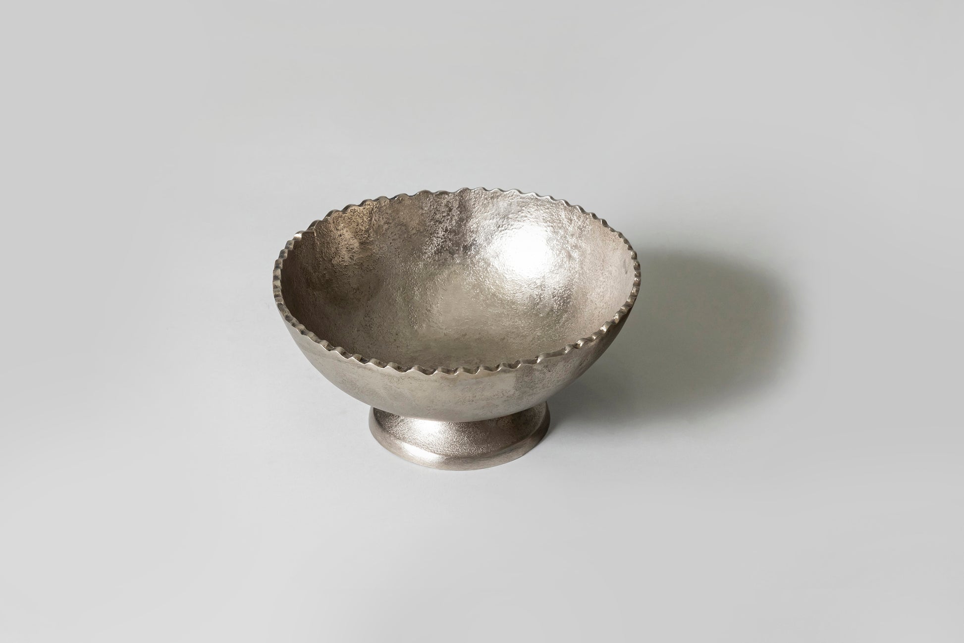 Shop Arc Bowls in cast aluminium with nickel finish set of 2 sculptural serving accents that also work as luxe festive centerpieces for modern homes.