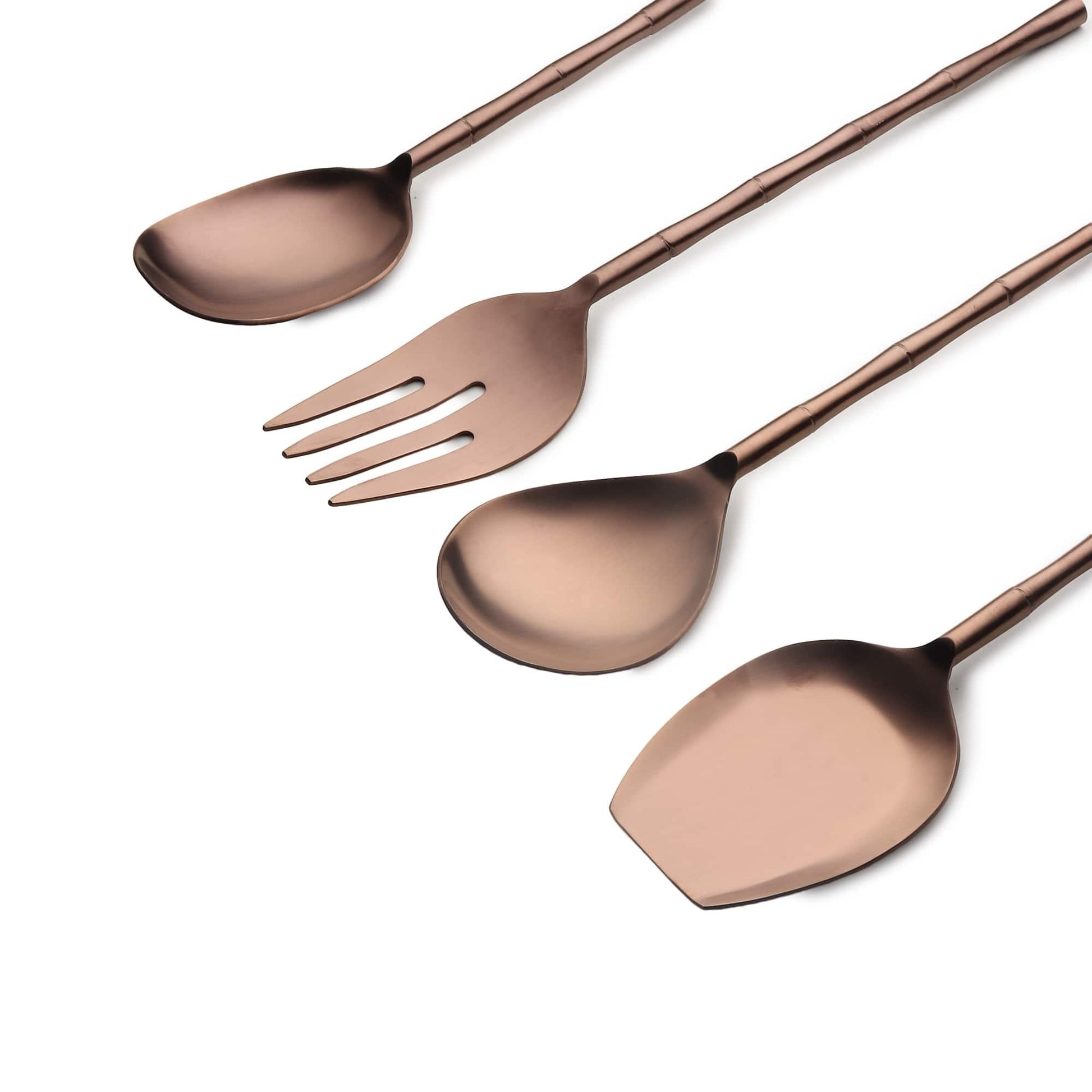 Elevate your serving style with the Bamboo Elegance Rose Gold Serving Set, featuring bamboo-inspired handles in a warm gold finish. Designed for both beauty and function, it brings a refined, nature-inspired touch to any table Each set Contains Starter Fork/Salad Fork, 2 Gravy Spoons & 1 Rice Spoon. Pair it with it's cutlery set for a perfectly set Dining Table.