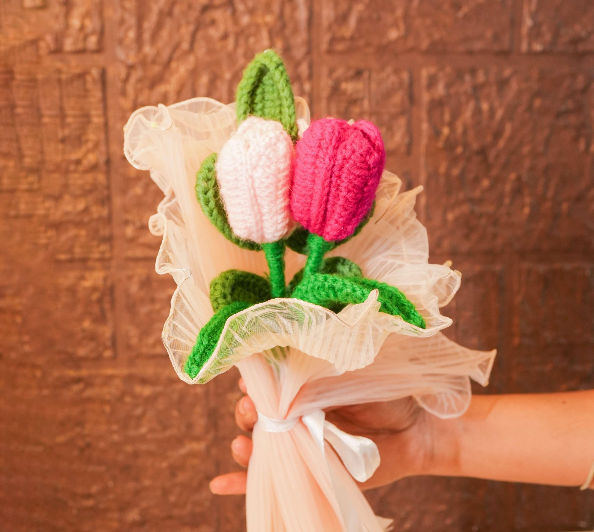7. Crochet tulip flower bunch in light wrapping