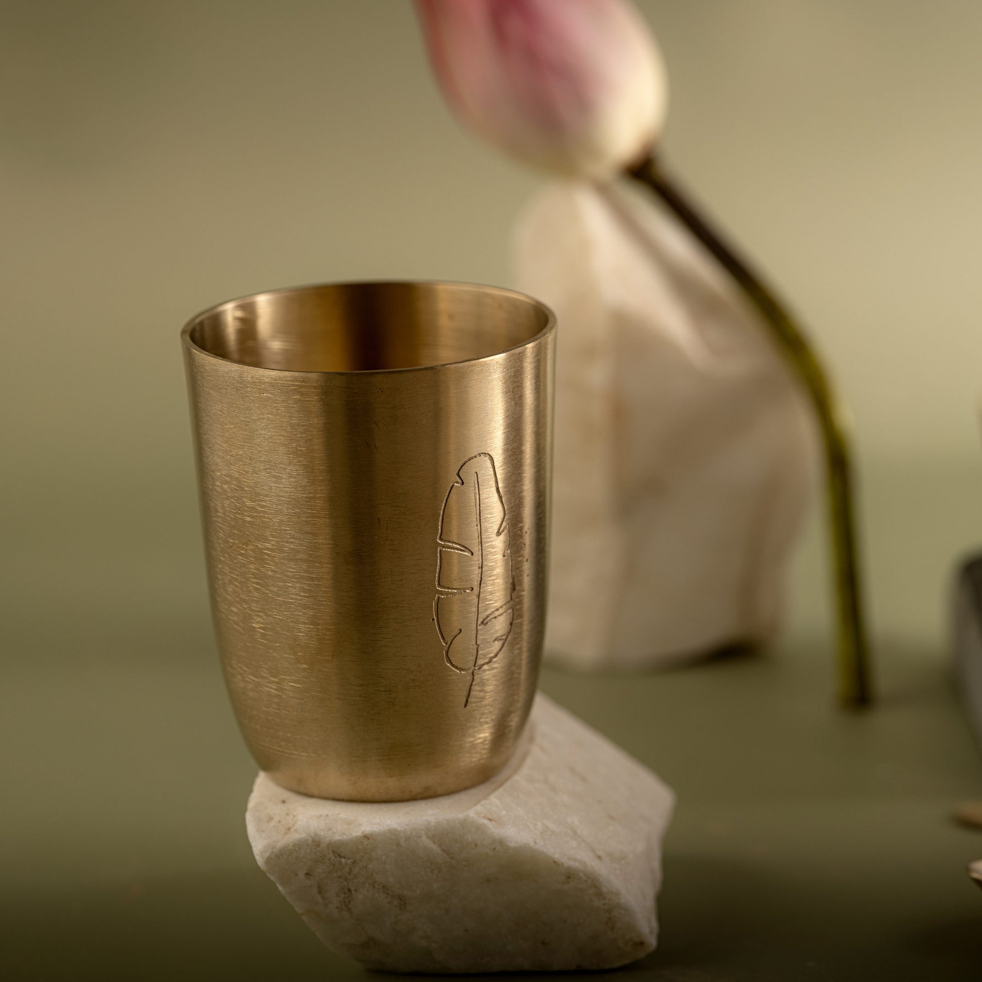 Manjari | Set of 5 | Brass Dinner Set With Leaf Motif