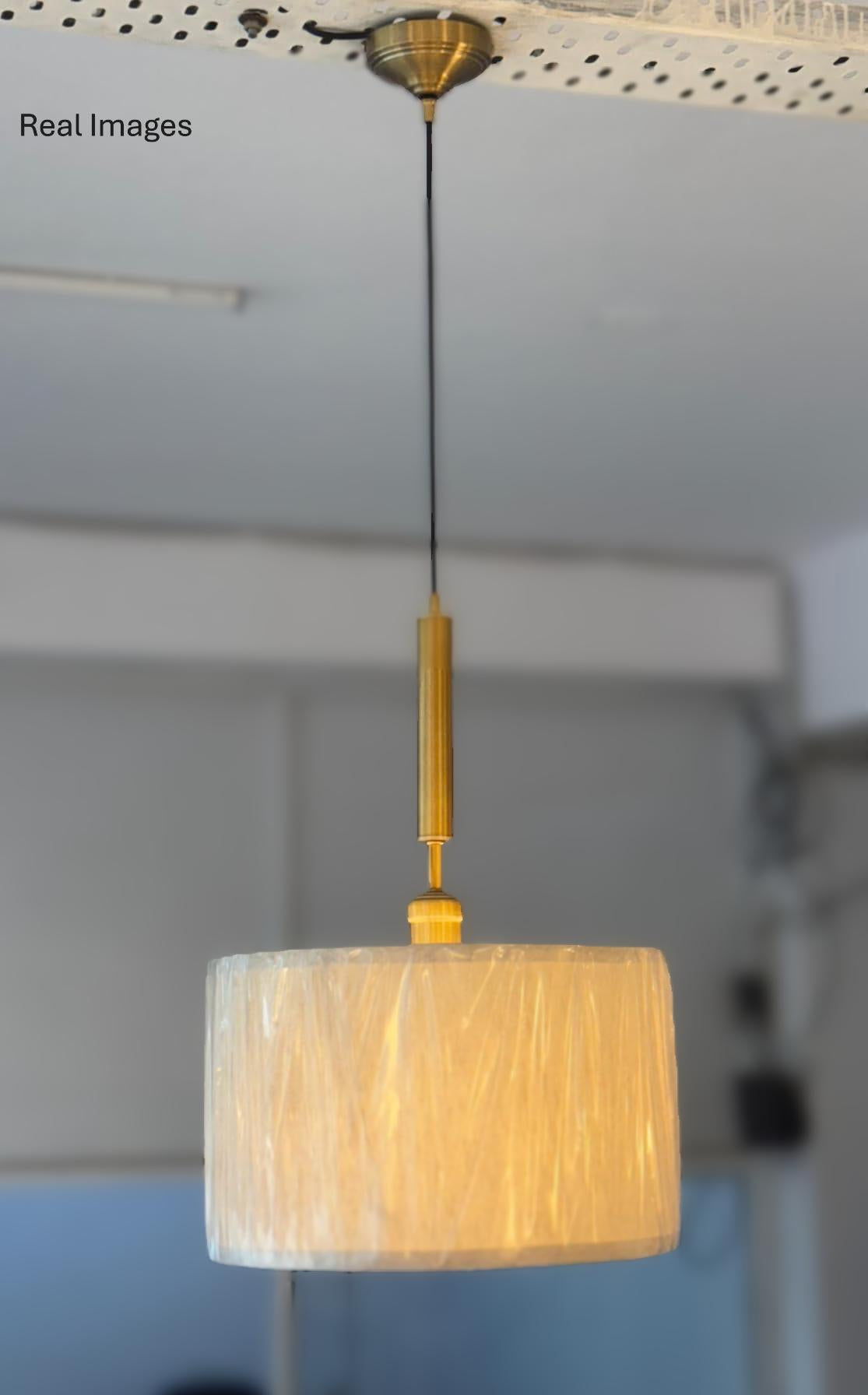 Brass Antique Cotton Fabric Pendant Lamp Shade | Hanging Lamps Light for Living Room, Bedroom, Restaurant, Cafe