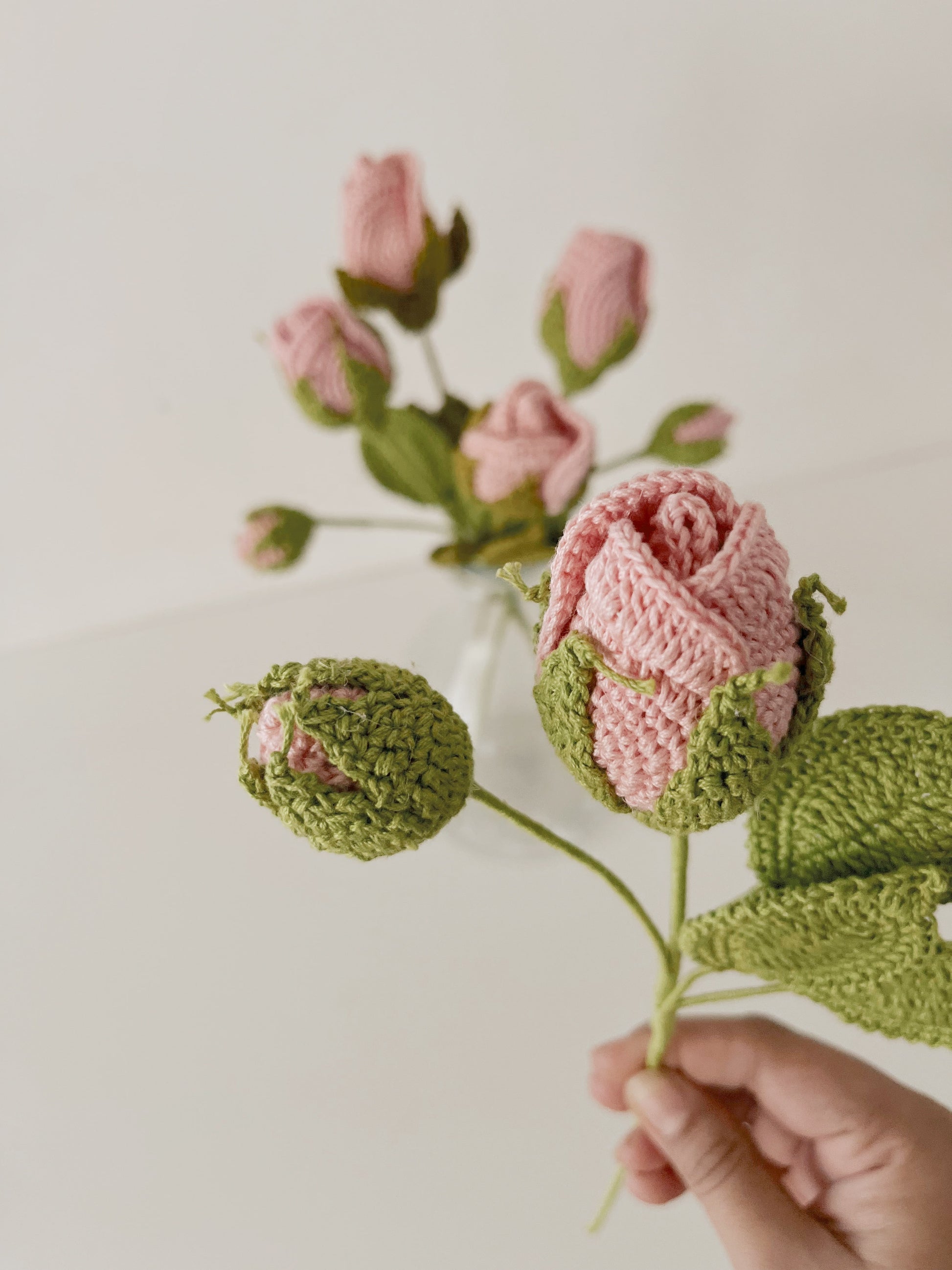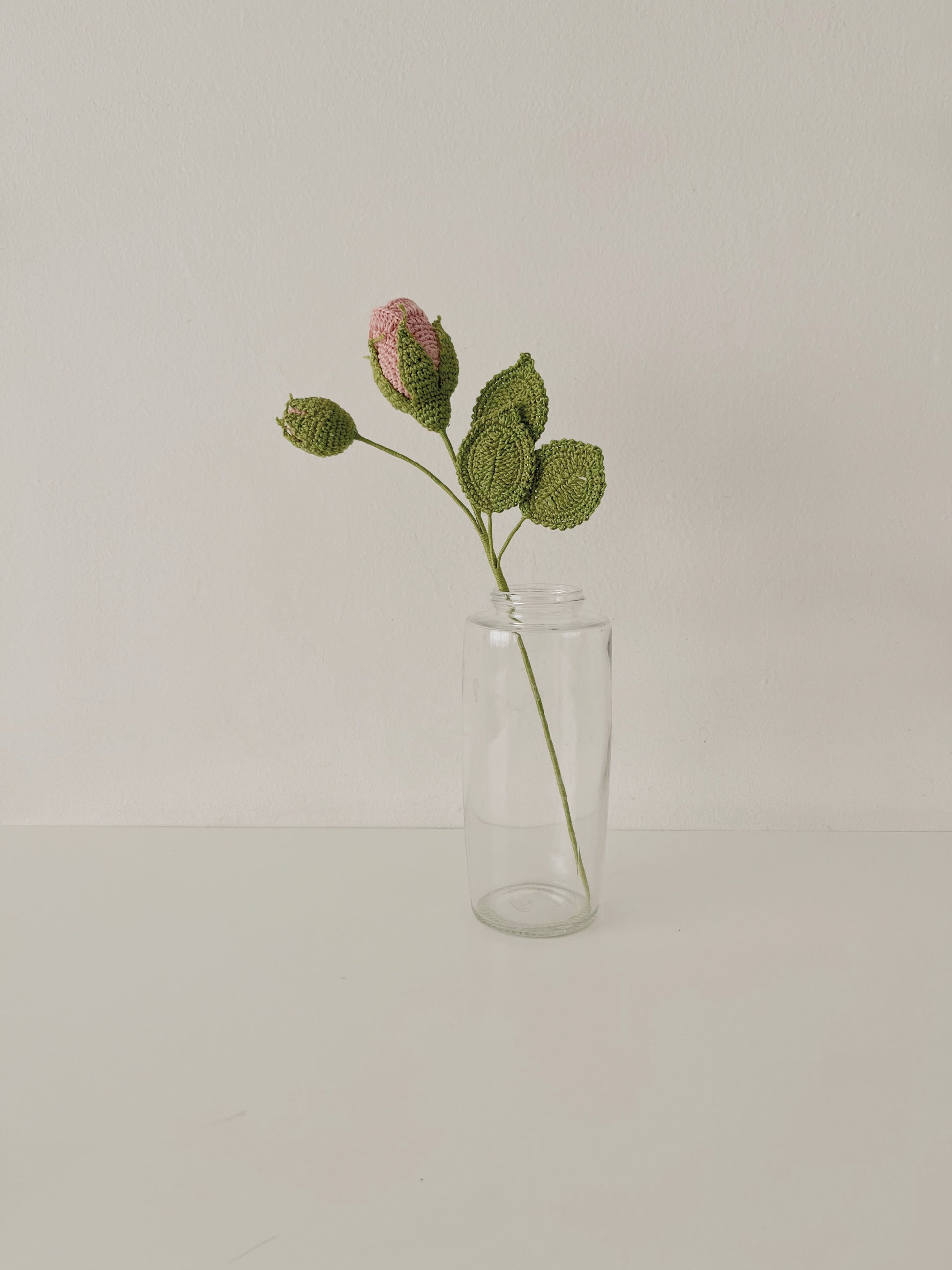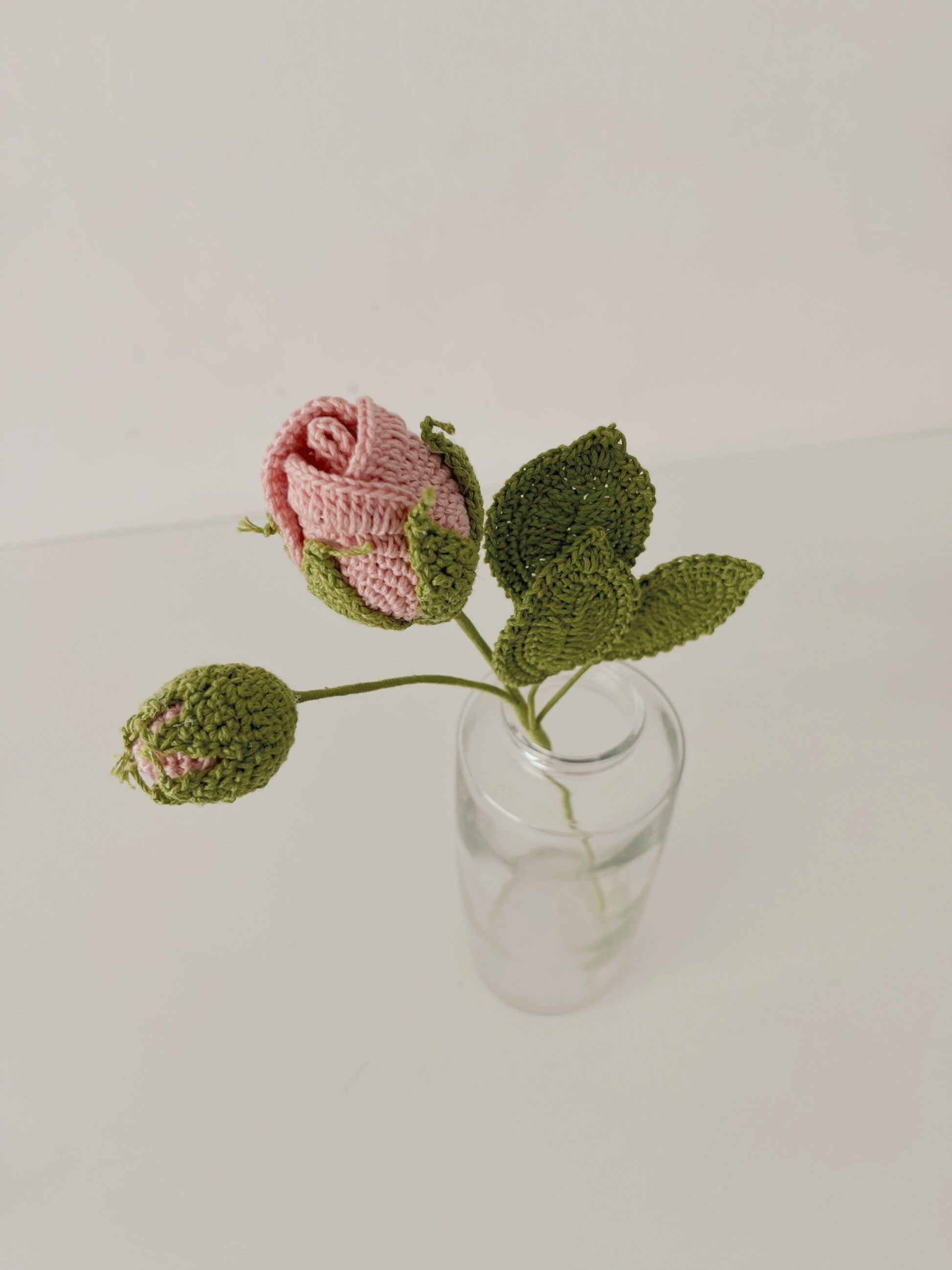 Rose stick have petal petal rose with 1 small bud and 3 leaves.