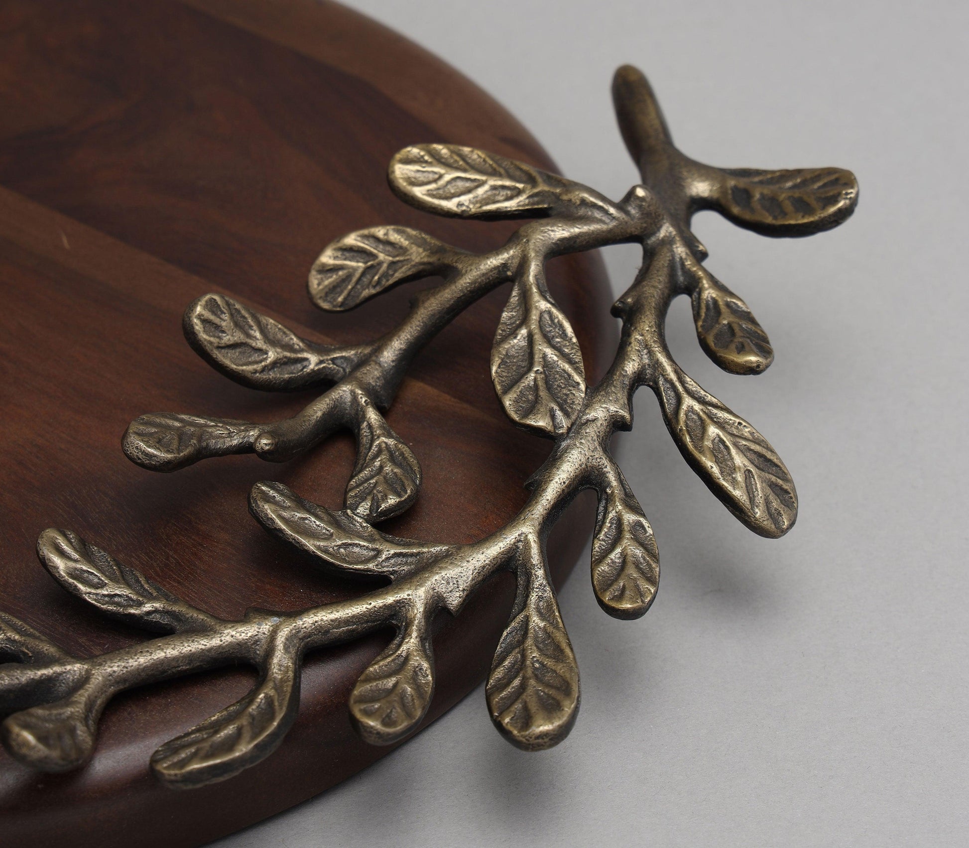 Nothing says class like a wine and cheese tasting with your nearest and dearest. The essence of the leaf cheese board is sure to tie together your entire table setup. Marvel at the antique brass finished foliage on this dark walnut finished wooden board, combining natures beauty with a touch of minimalist modern design.