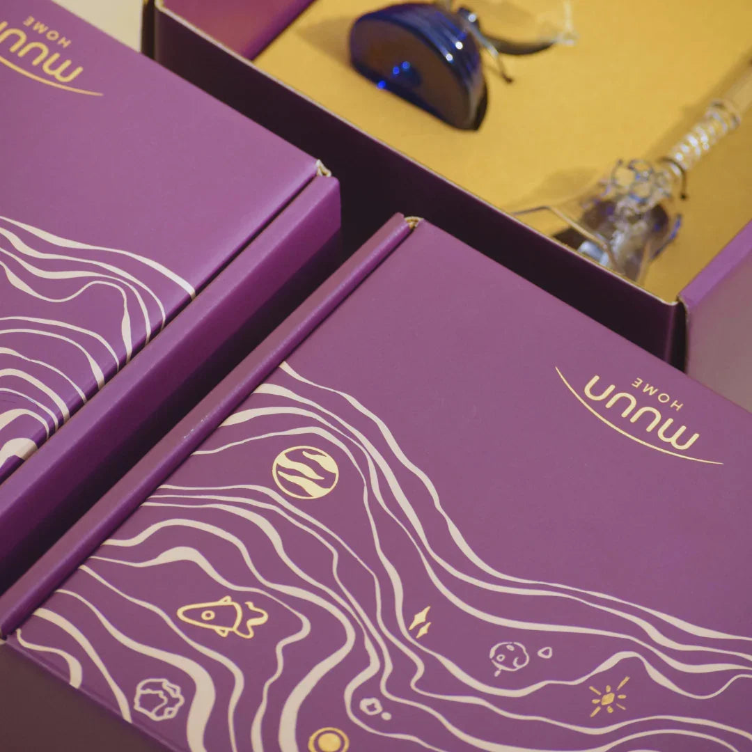 Available in three colors - amber, pink, and cobalt blue - this set is crafted from durable borosilicate glass, often used in laboratories, ensuring they are resistant to flames and breakage.