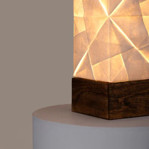 The Sonobe Tetris Lamp is a modern masterpiece that blends art, innovation, and functionality into one striking lighting statement. Crafted using our patented modular origami folding technique, each piece is meticulously hand-assembled by master craftsmen, creating a sculptural form that’s as unique as it is beautiful. Made from premium HDPE, it’s tear-resistant, dust-resistant, and water-resistant, ensuring durability without compromising on elegance. The intricate folds cast enchanting silhouettes and a warm, inviting glow unlike any other lamp. Signature Modular Origami Craftsmanship – The Sonobe Tetris lamp is created using our patented folding technique, where individual origami modules are expertly assembled by master craftsmen for a truly distinctive look. Durable & Functional – Made from premium HDPE, the shade is tear-resistant, dust-resistant, and water-resistant, ensuring long-lasting beauty with minimal maintenance. Striking Light Play – Unique folds create natural silhouettes and an ambient glow unmatched by any other material or technique. Secure Magnetic Assembly – Equipped with clip magnets to keep the lamp perfectly in place for stable, worry-free use. Luxury Mango Wood Base – Crafted from fumigated natural mango wood, the base adds a warm, luxurious touch to your décor. Patented Global Design – A one-of-a-kind lighting piece celebrated worldwide for its originality, functionality, and modern aesthetic—making it a must-have home essential.
