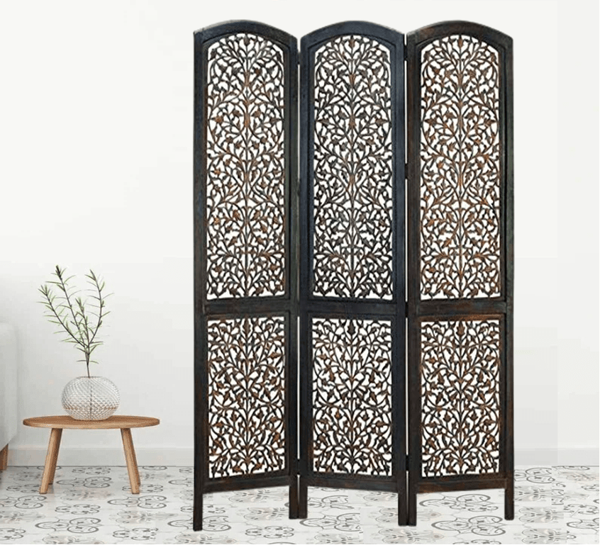 Foldable Room Screen Divider | Room Separator Dividers Panels to be placed in Zigzag Position Hand crafted by skilled artisans with premium finishing. No Assembly Required: The product is delivered in a pre-assembled state.