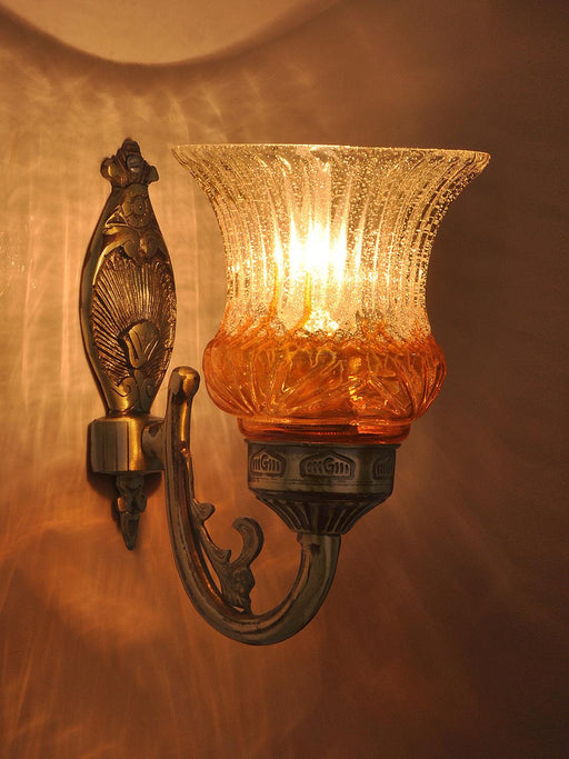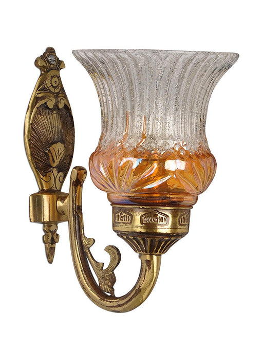 Classic Indian Hand-Carved Brass Candelabra Wall Sconce
