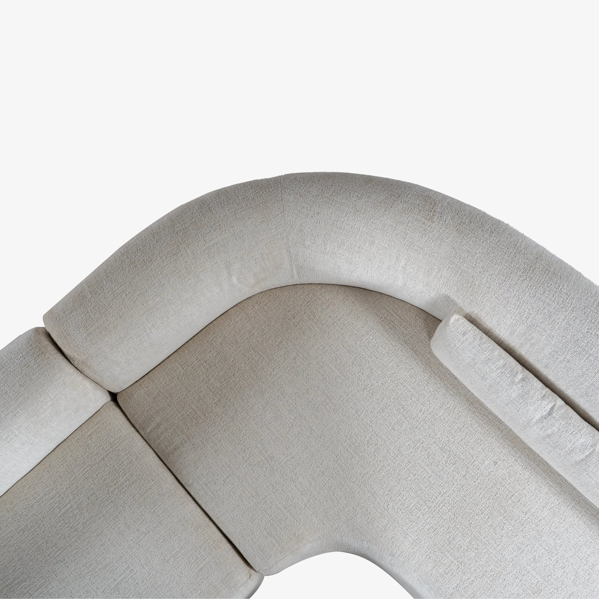 The Riwa Sectional Sofa redefines modular elegance with its wedge-shaped silhouette. Upholstered in soft neutral fabric, it offers deep seating and versatile configurations, making it ideal for modern living spaces where comfort meets geometry.