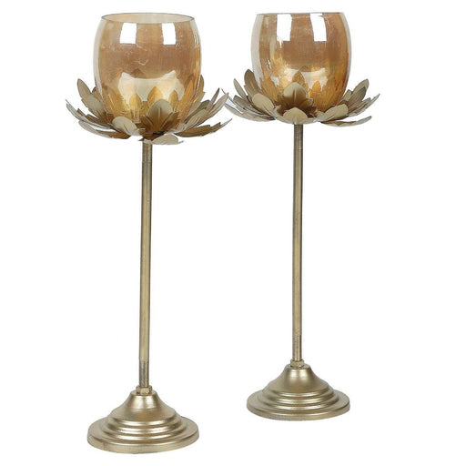 Buy Candle Stand - Decorative Hook Flower Hanging Tealight Holder Golden - Set Of 2 by Amaya Decors on IKIRU online store